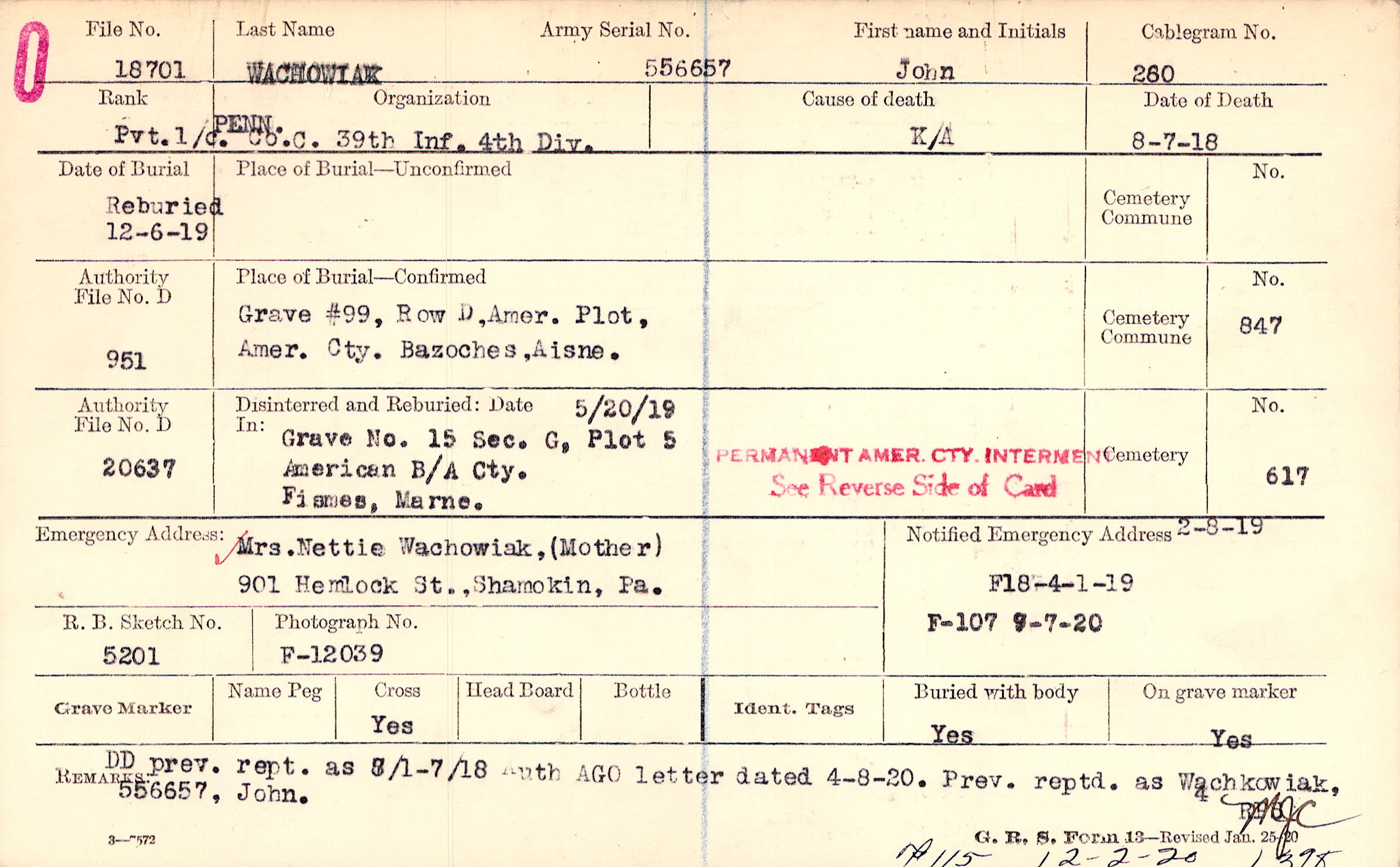 Reburied 12/6/1919
