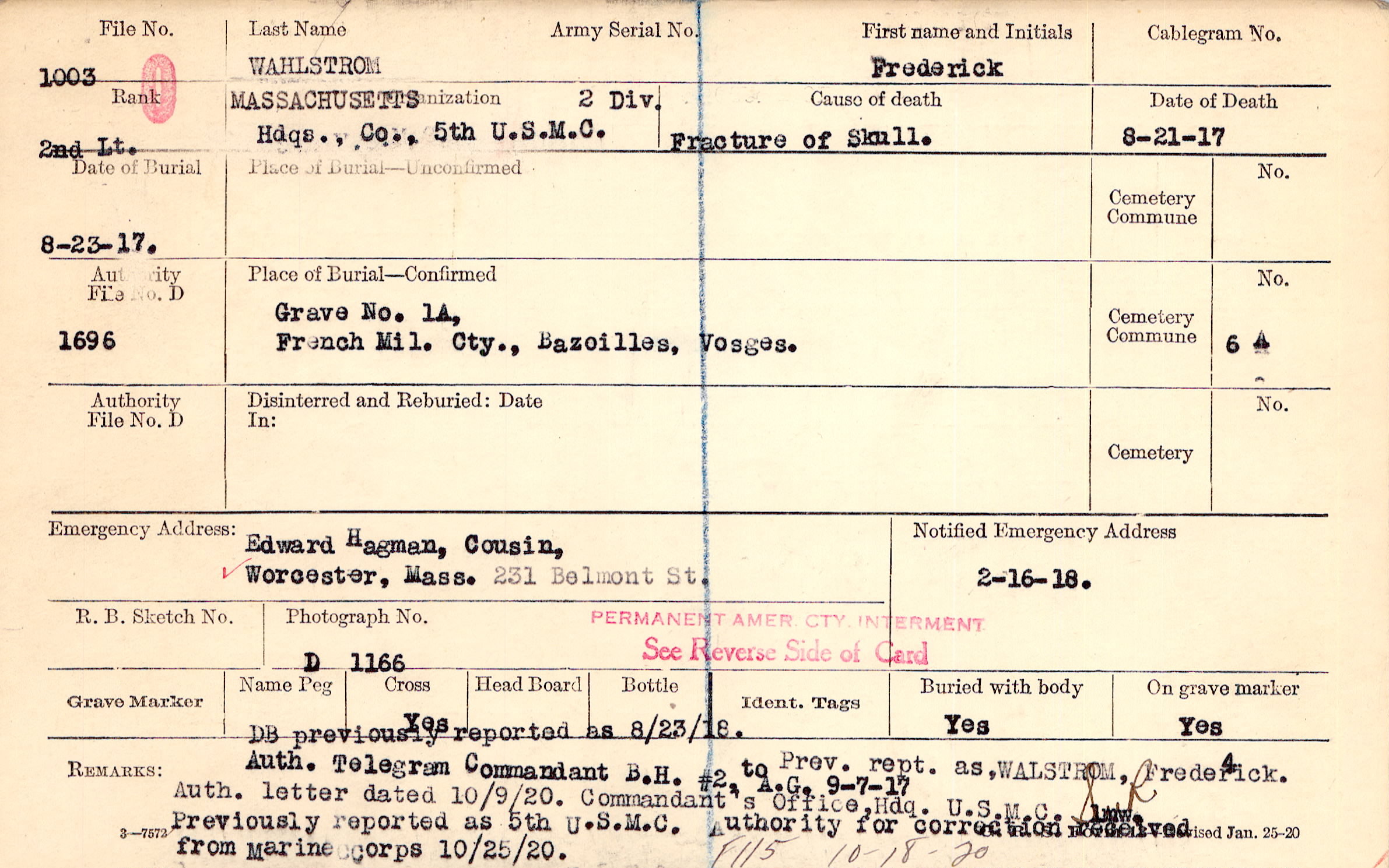 Grave 1A, French Mil. Cty., Bazoilles, Vosges