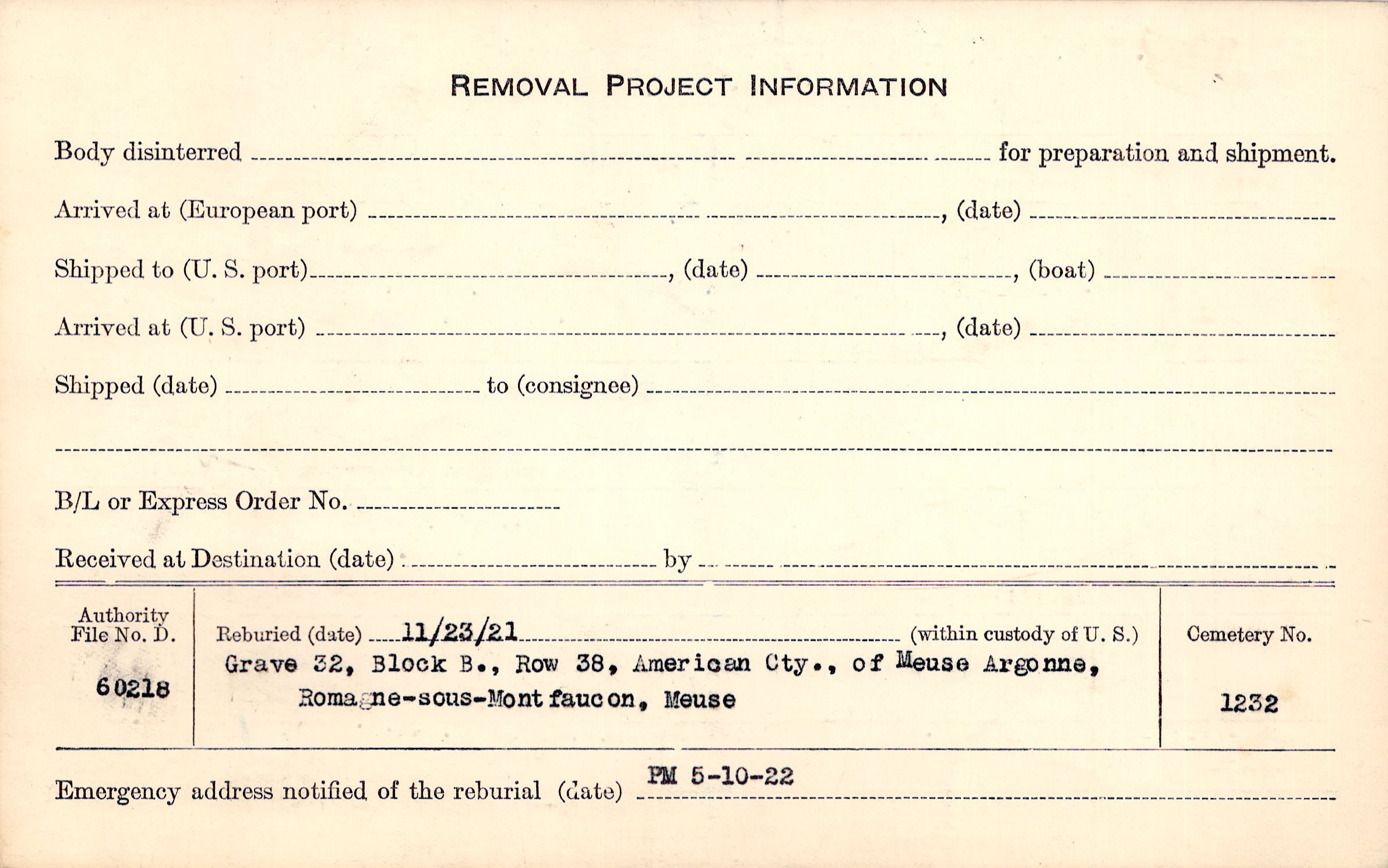 | Permanent Burial in Foreign Cemetery |
