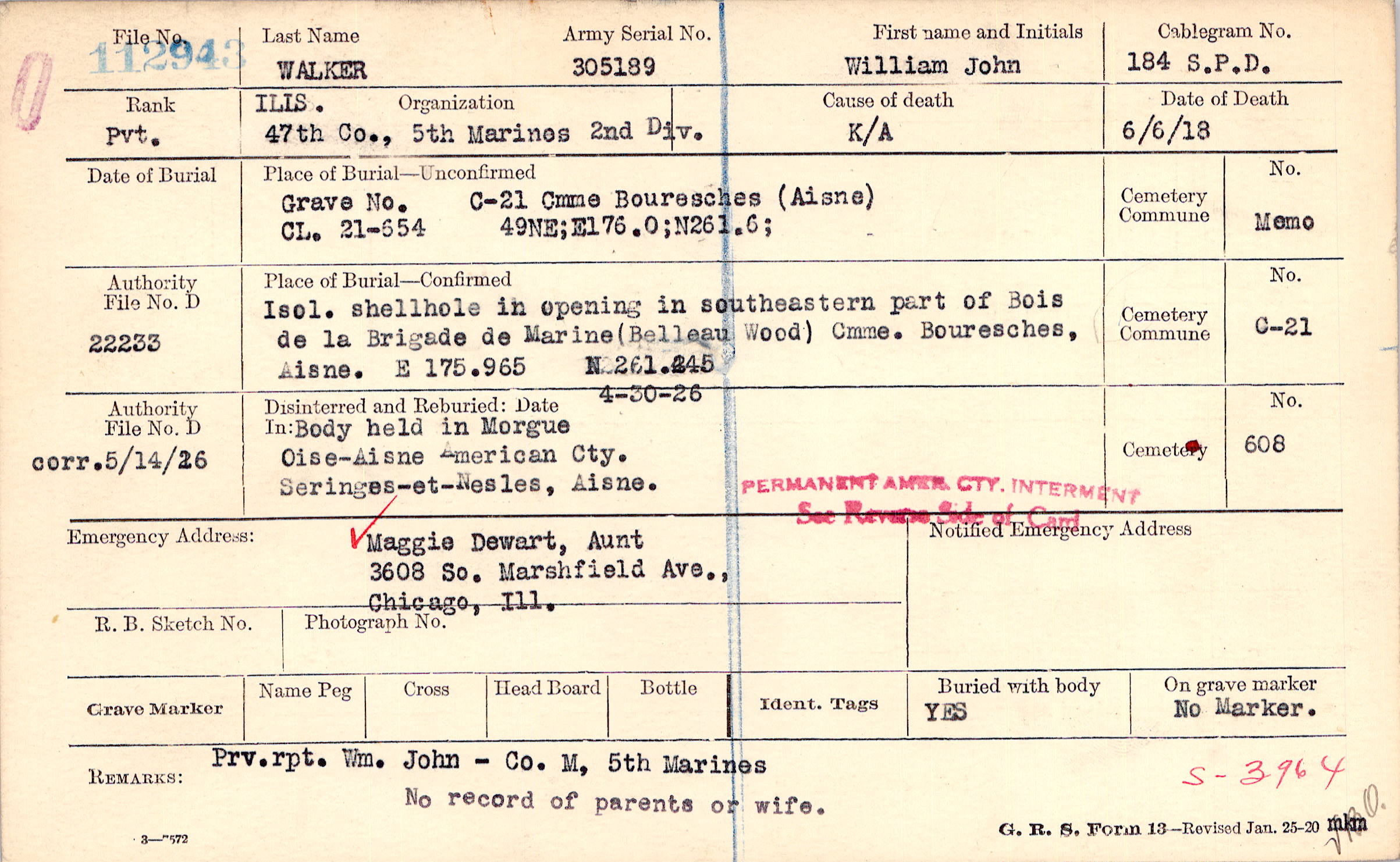 Prv. rpt. Wm. John - Co. M, 5th Marines No record of parents or wife. S-3964, S-3964
