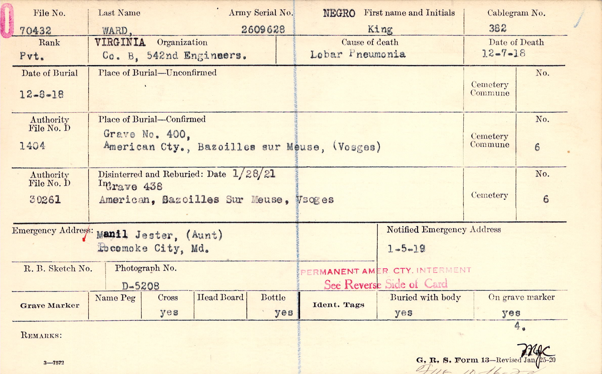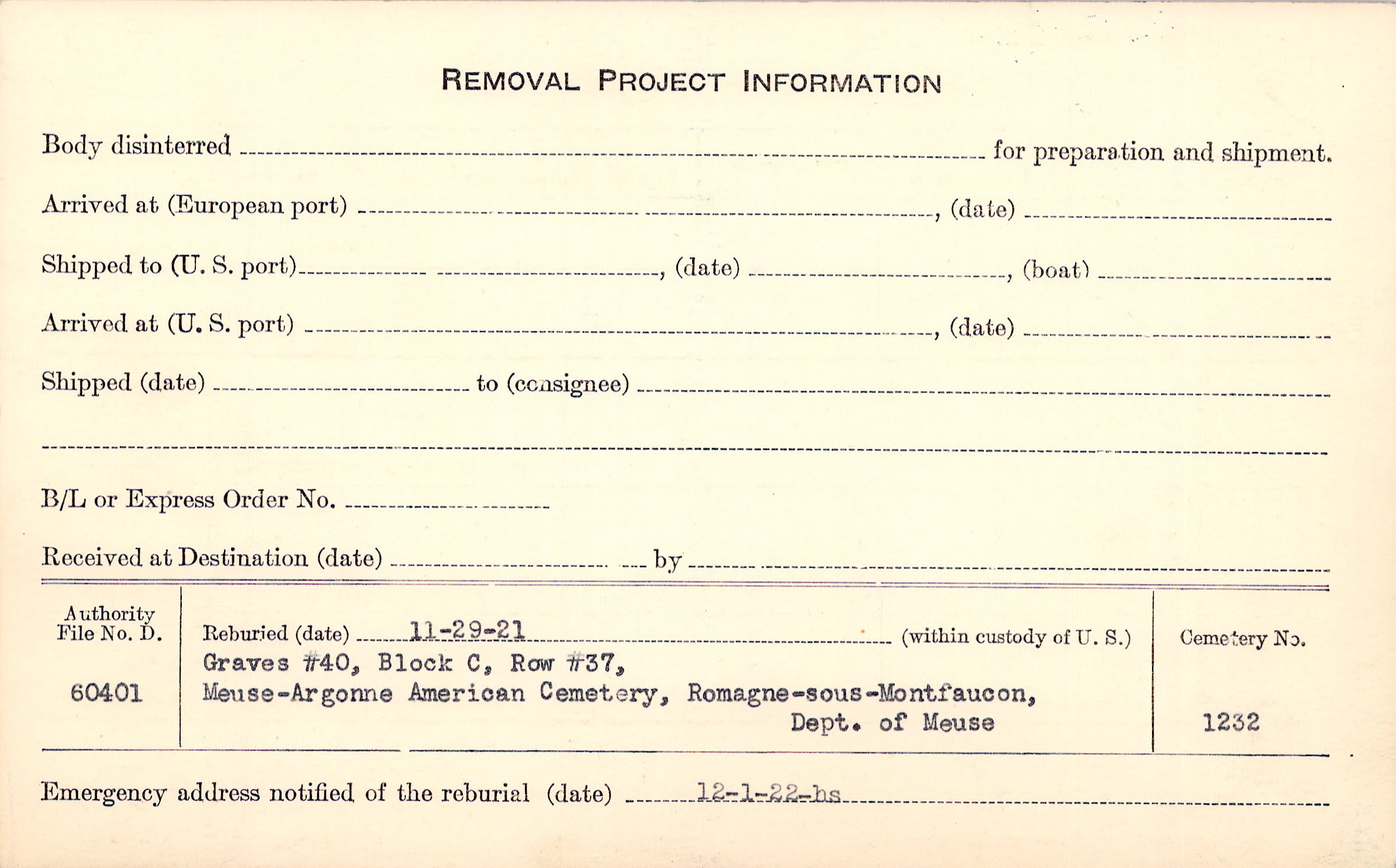 Grave 400, American Cty., Bazoilles sur Meuse, Vosges.