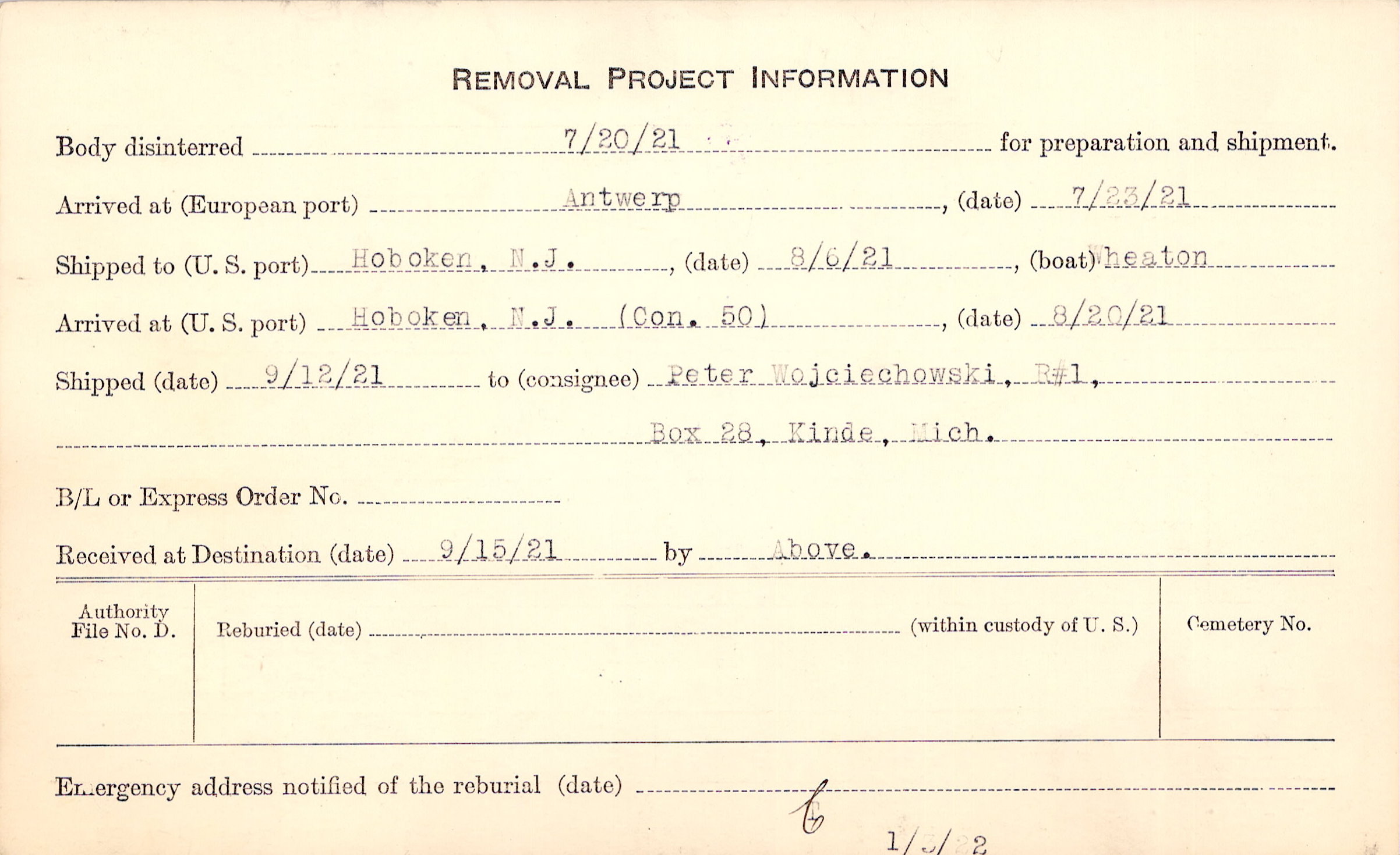 to Peter Wojciechowski, R#1, Box 28, Kinde, Mich.