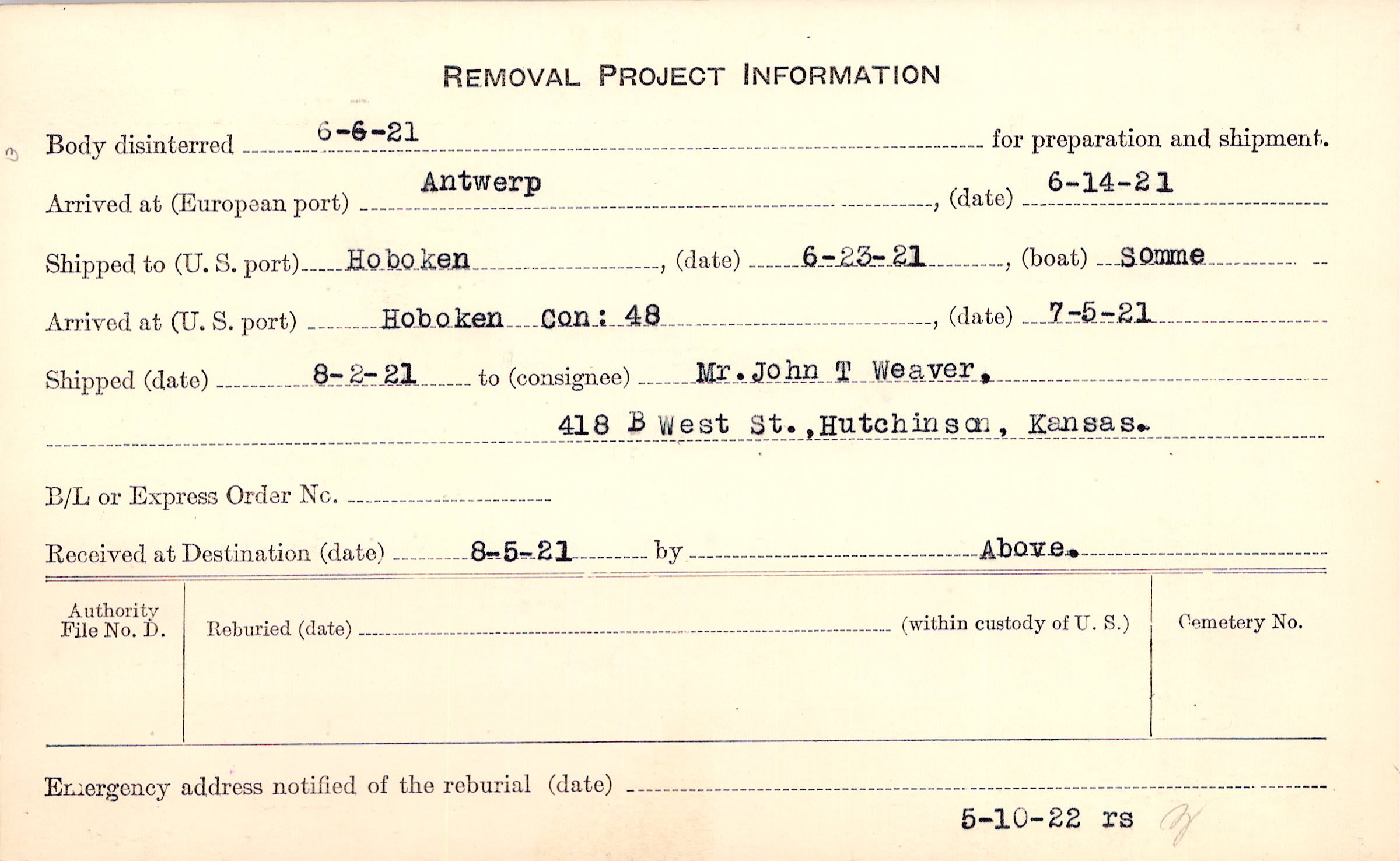 John Thomas Weaver (Father), 404 C. East St., Hutchinson, Kans.