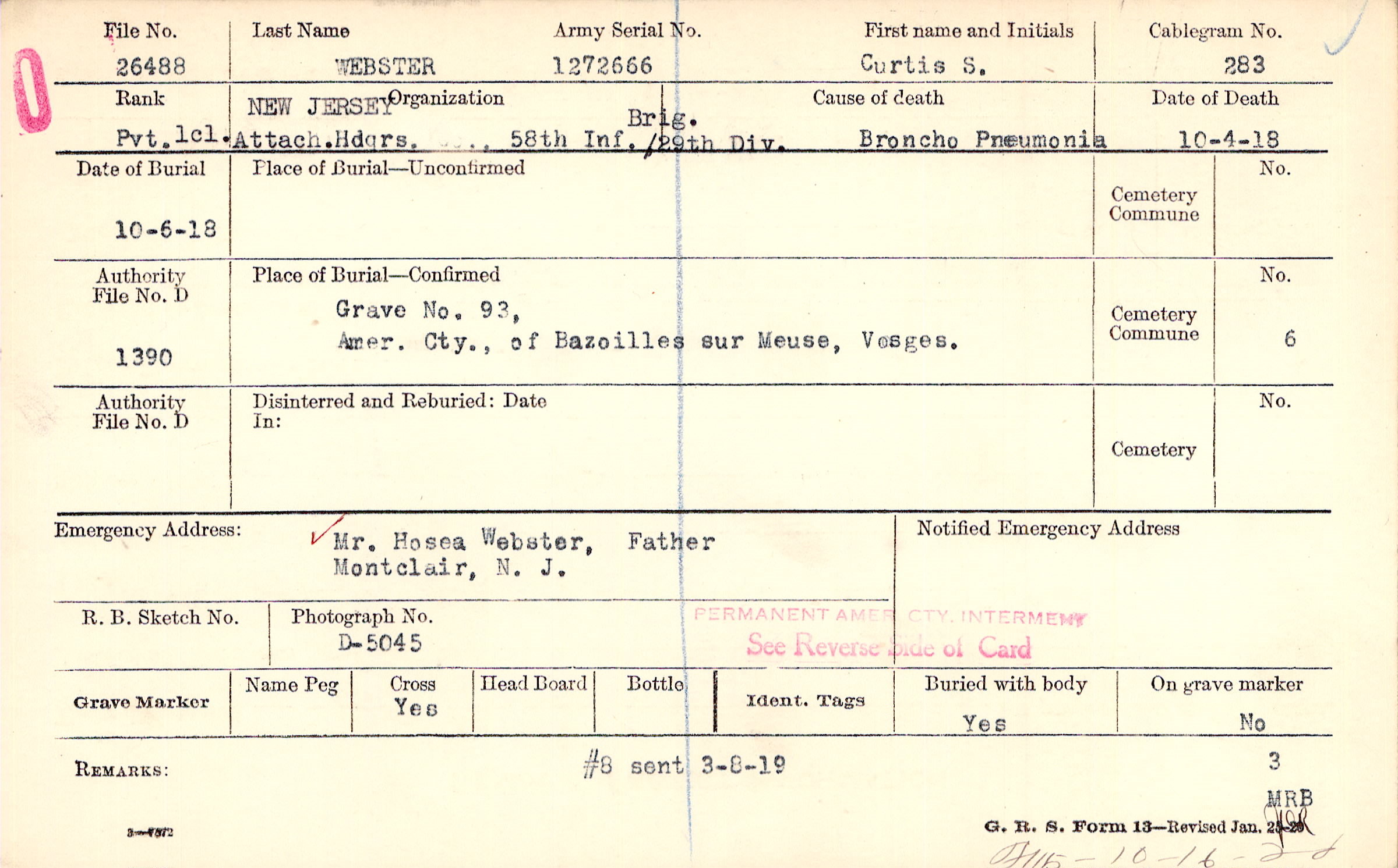 Grave 93, Amer. Cty., of Bazoilles sur Meuse, Vosges.