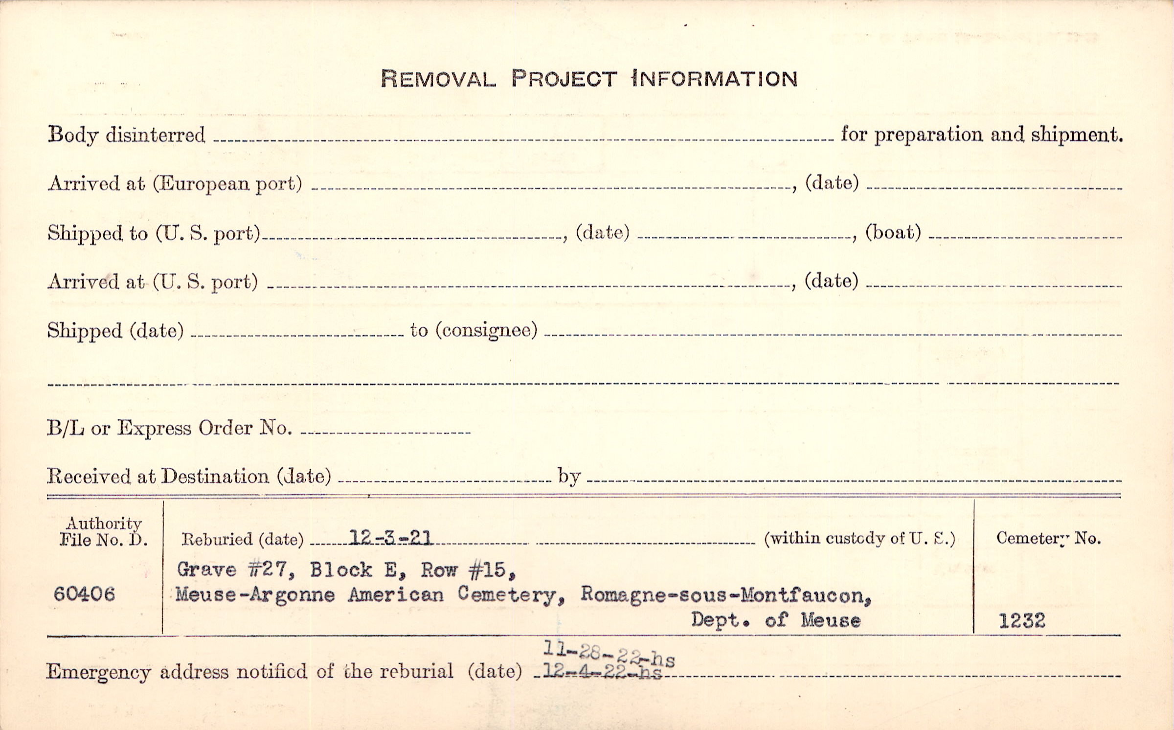 | Permanent Burial in Foreign Cemetery |