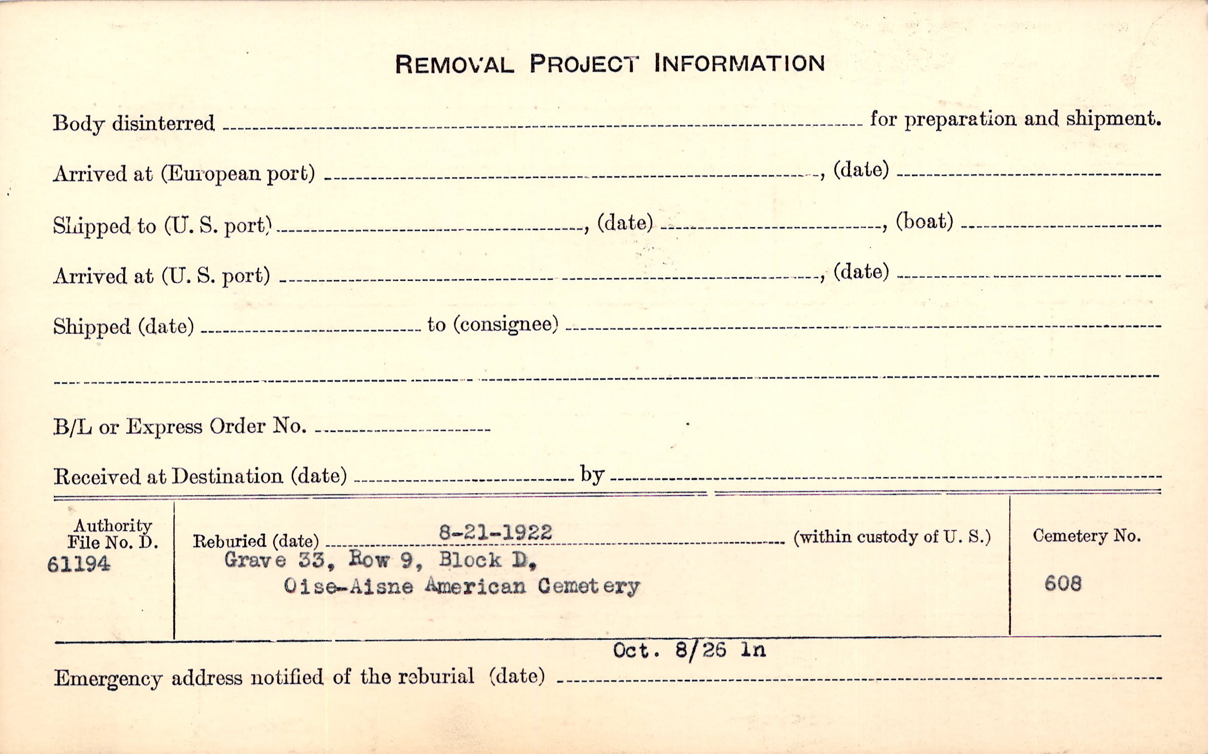 | Permanent Burial in Foreign Cemetery |