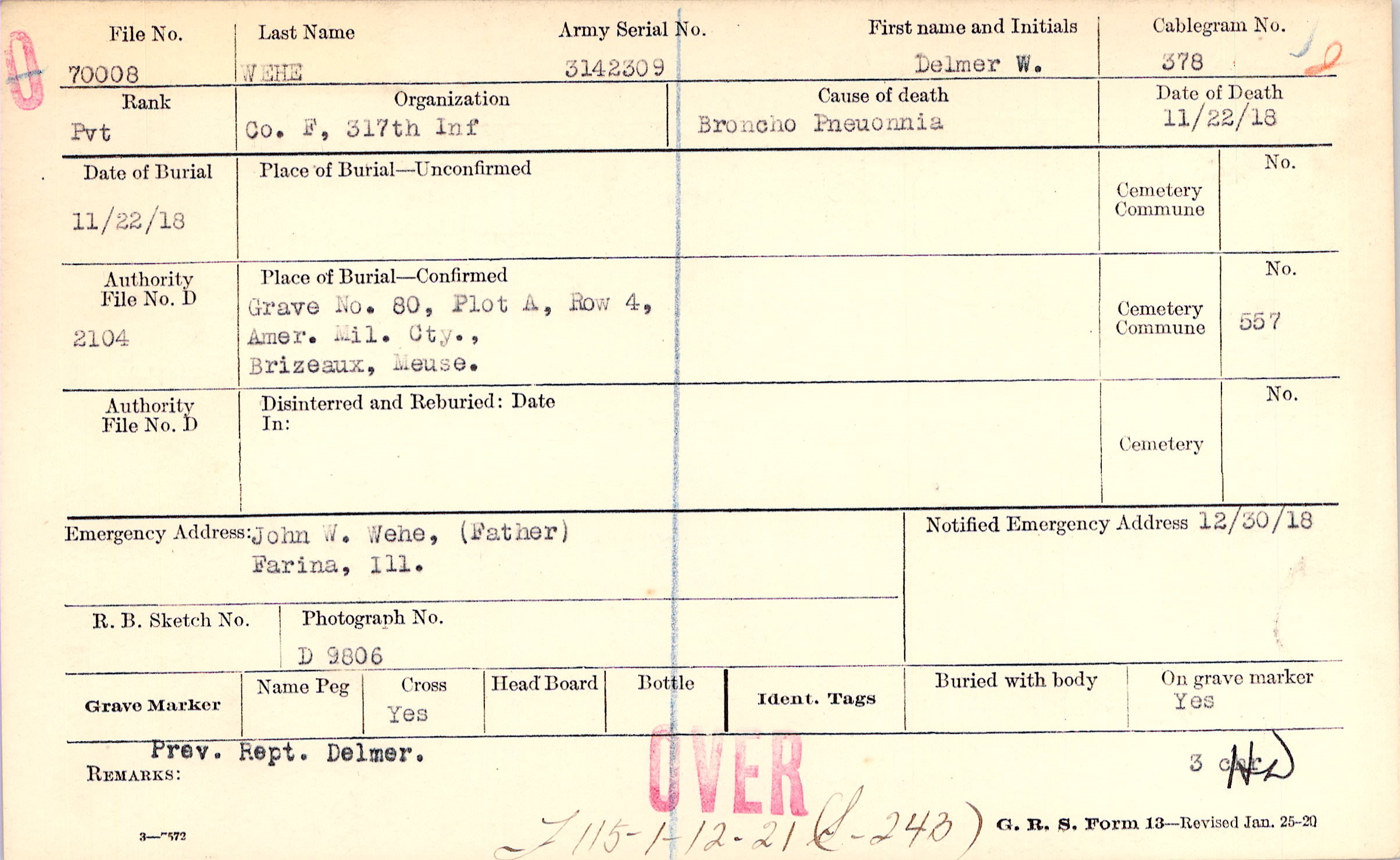 Grave 80, Plot A, Row 4, Amer. Mil. Cty., Brizeaux, Meuse.