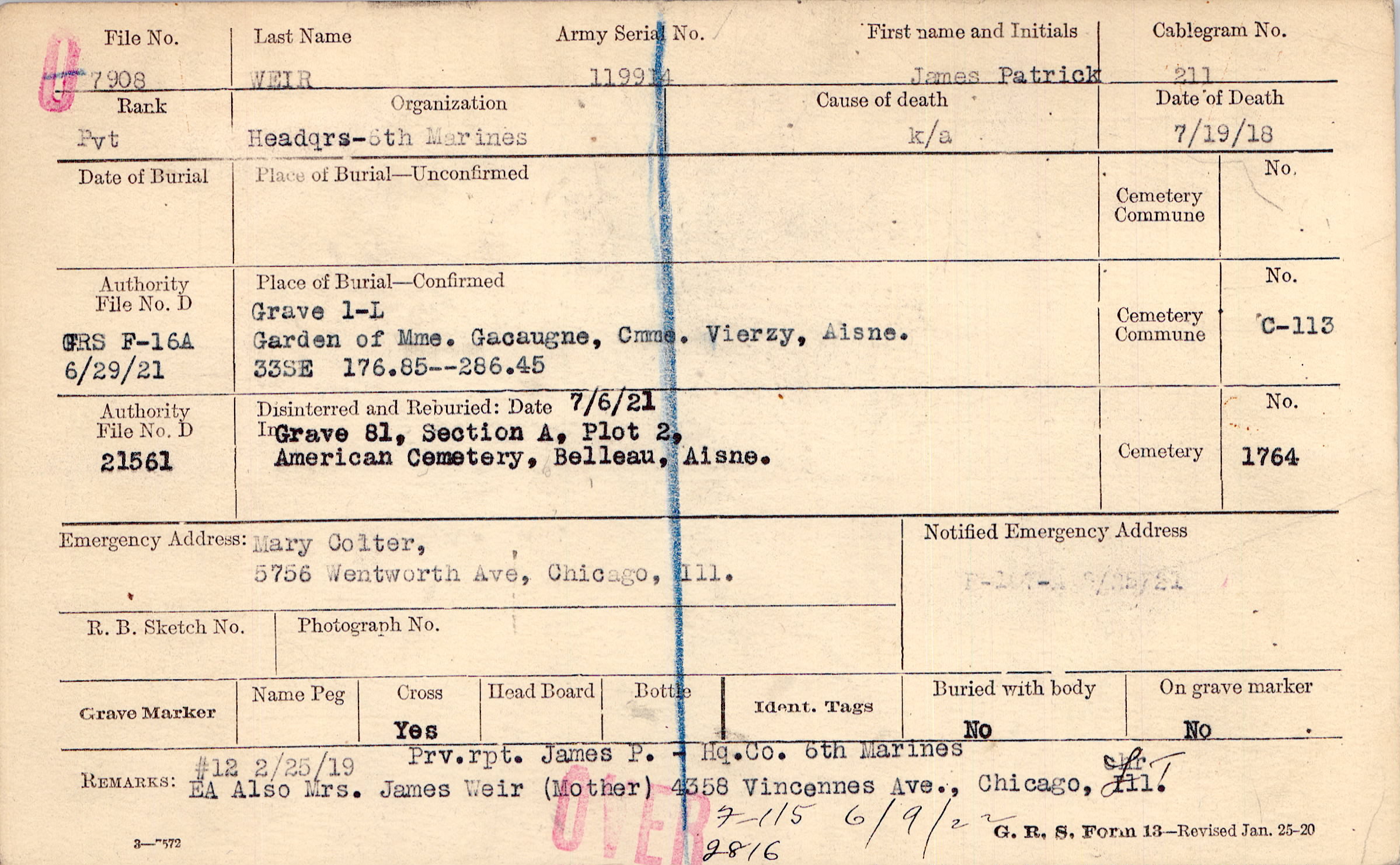Grave 81, Section A, Plot 2, American Cemetery, Belleau, Aisne