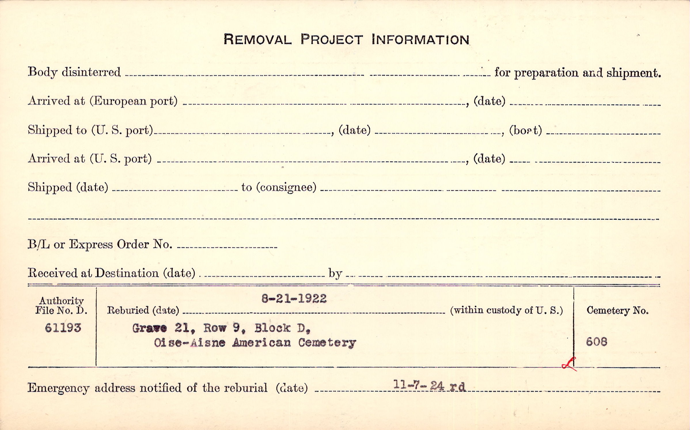| Permanent Burial in Foreign Cemetery |