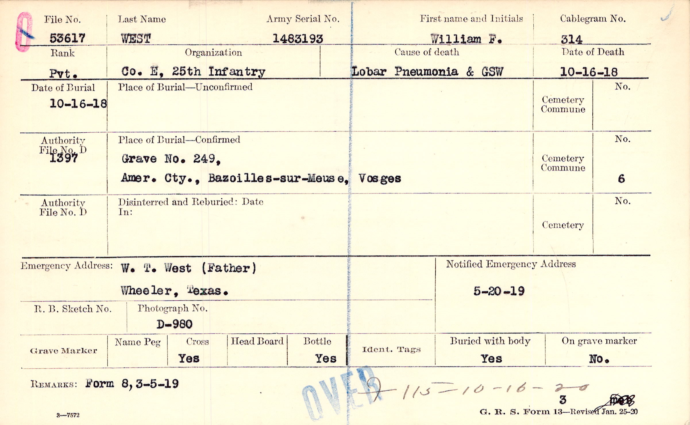 Grave 249, Amer. Cty., Bazoilles-sur-Meuse, Vosges