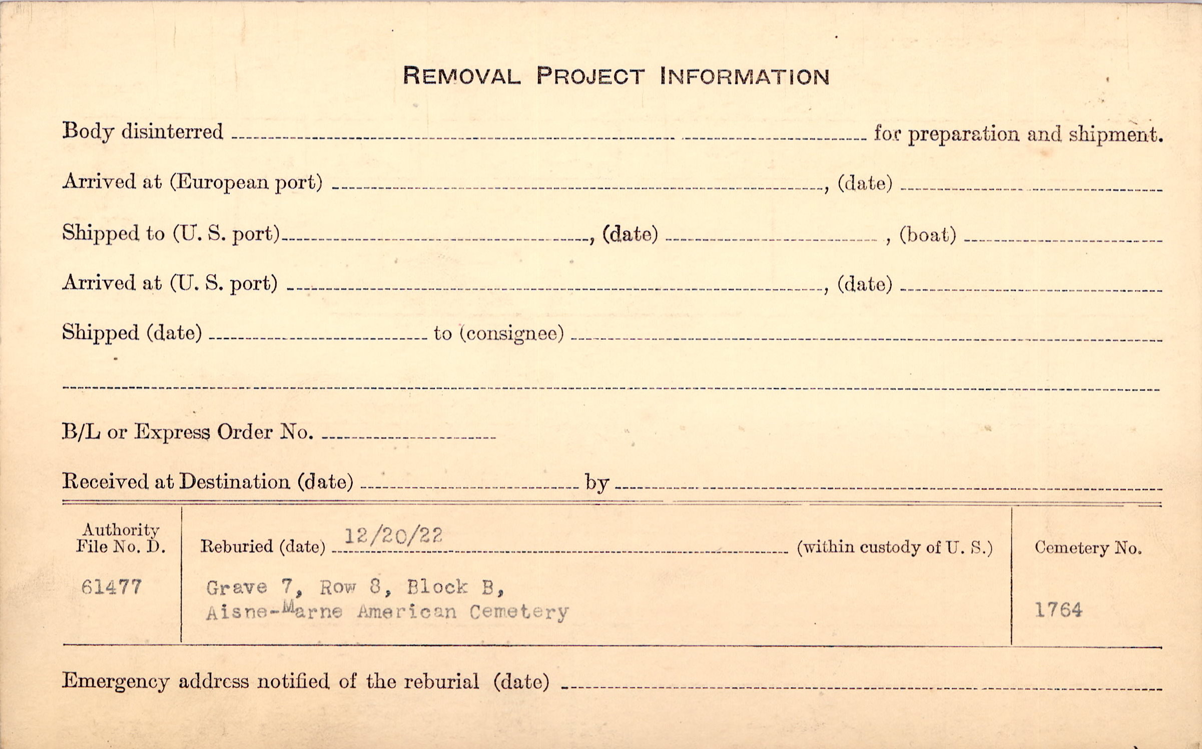 | Permanent Burial in Foreign Cemetery |