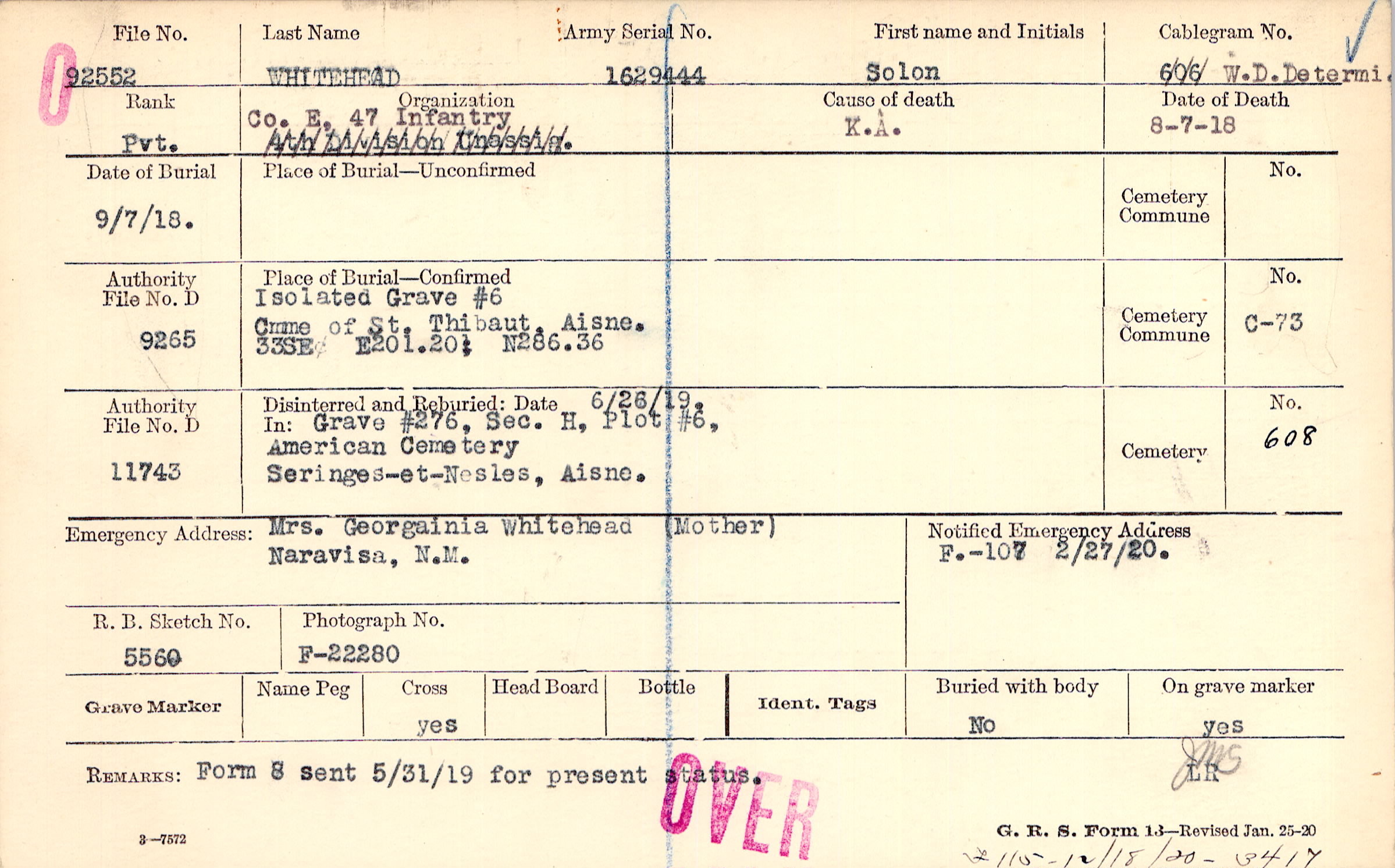 Mrs. Georgainia Whitehead (Mother), Naravisa, N.M.