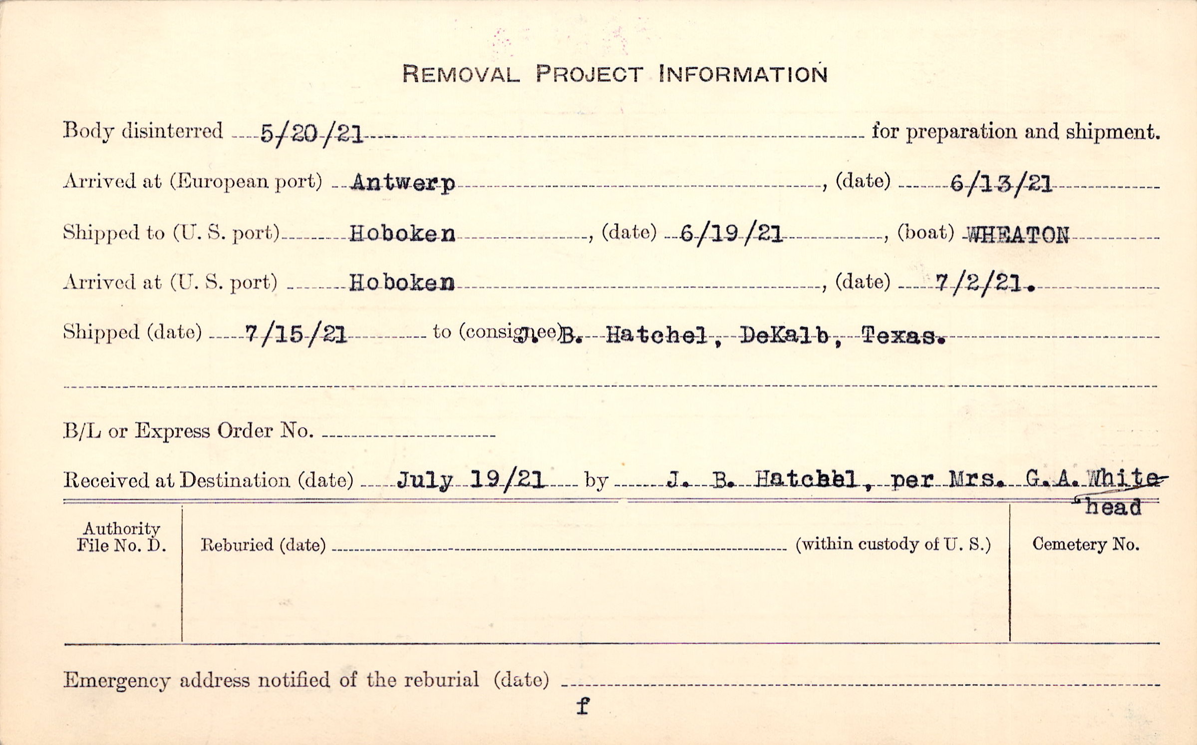 by J. B. Hatchel, per Mrs. G. A. Whitehead
