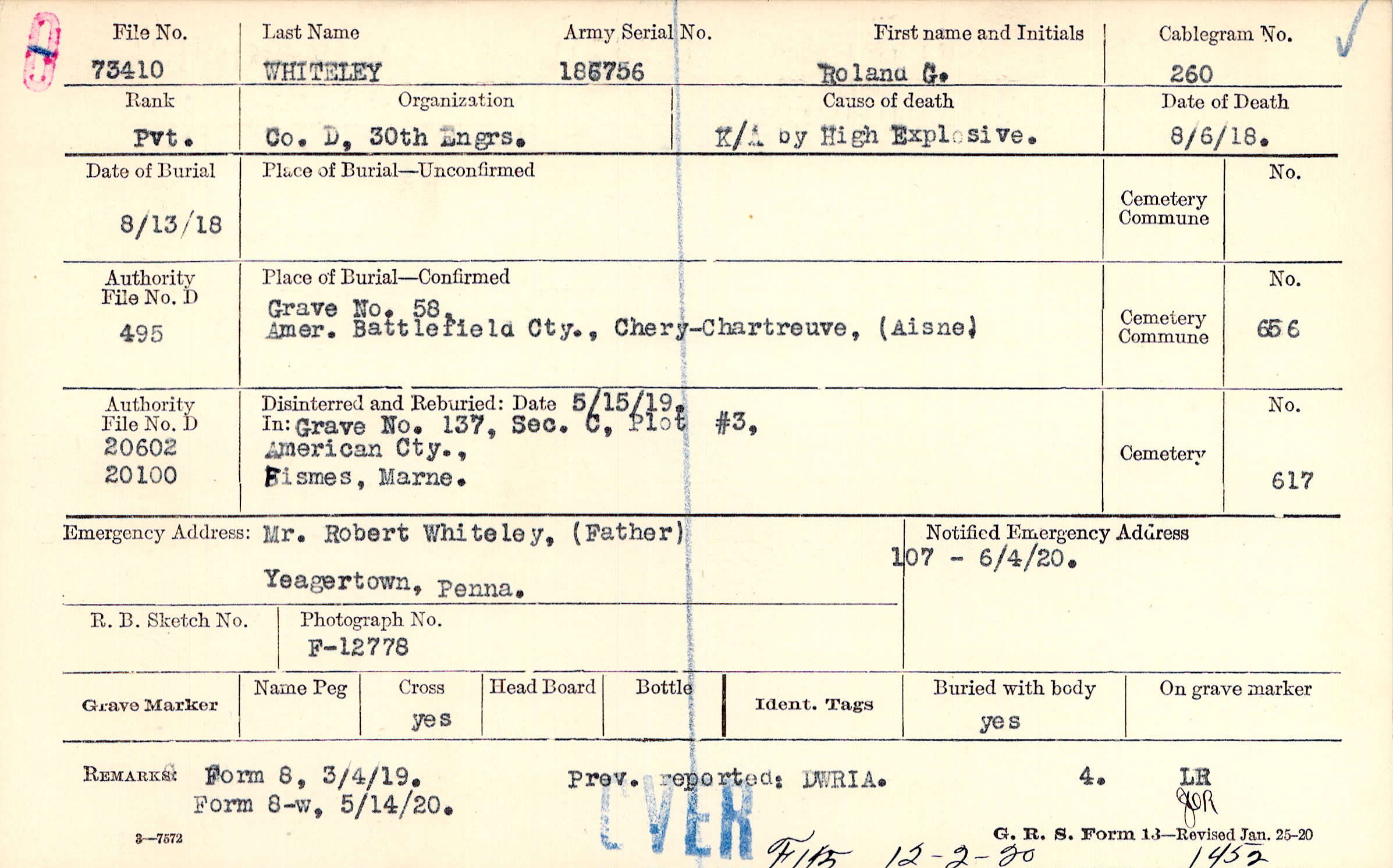 Grave 58, Amer. Battlefield Cty., Chery-Chartreuve, Aisne
