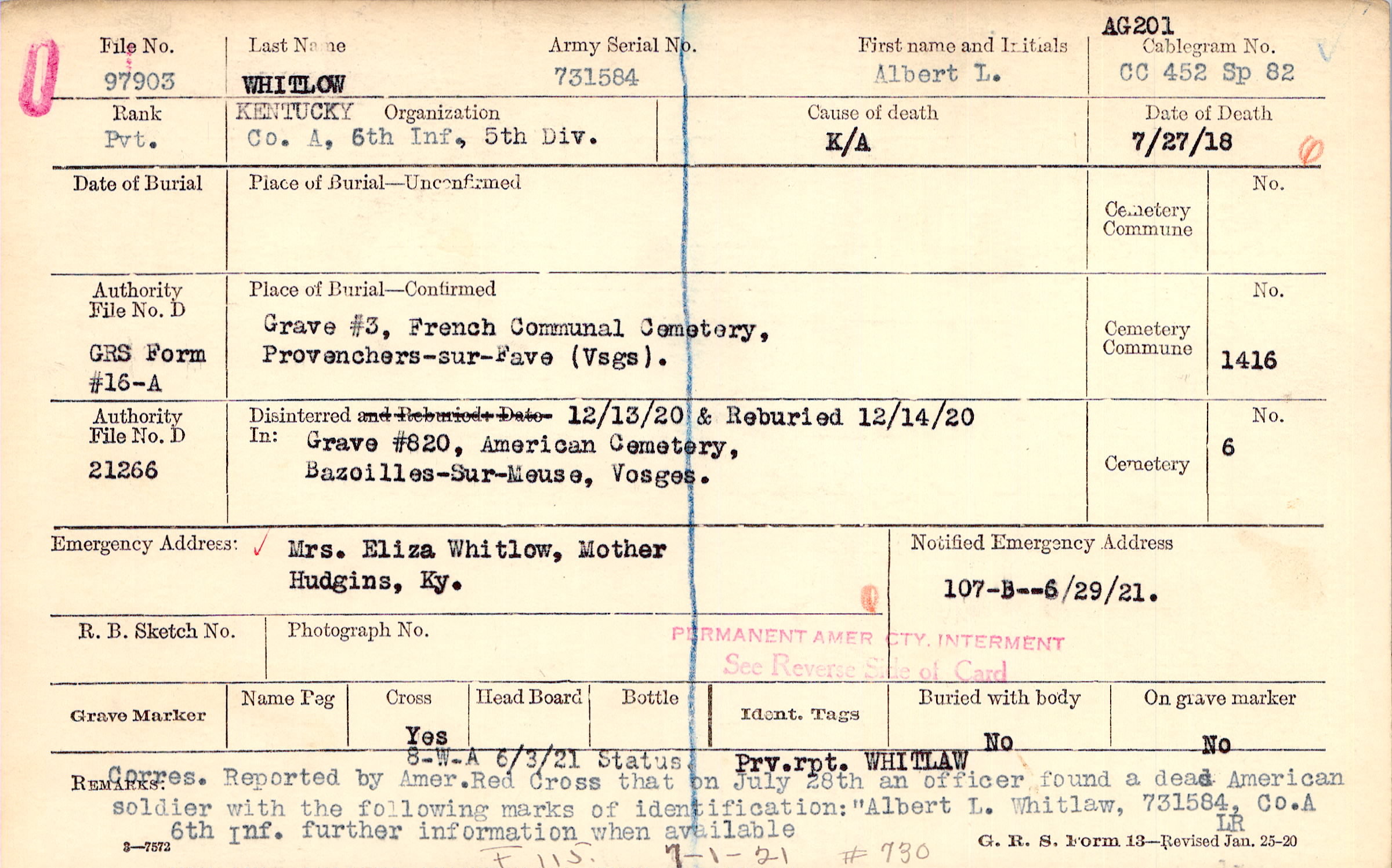 Grave 820, American Cemetery, Bazoilles, Vosges