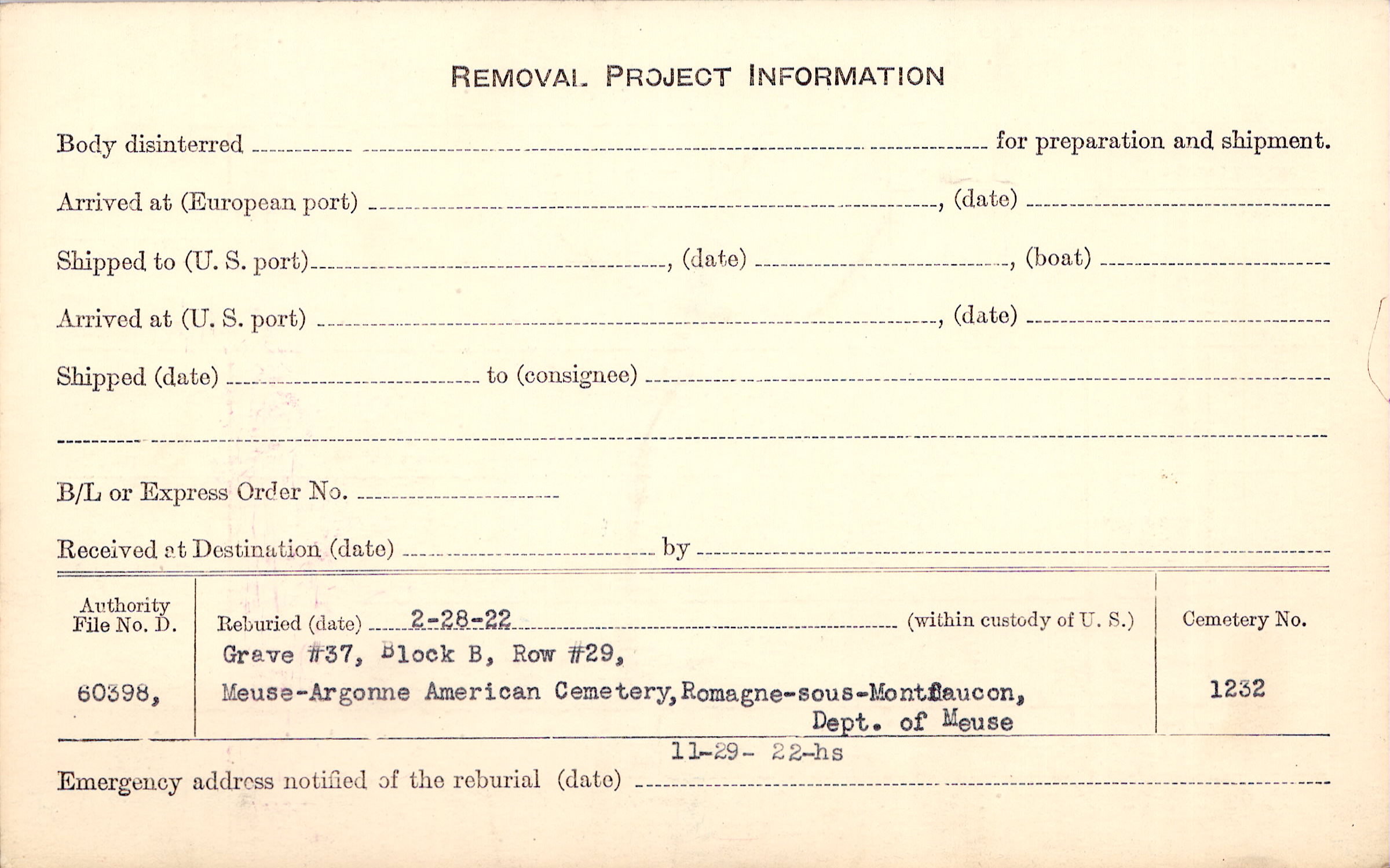 | Permanent Burial in Foreign Cemetery |