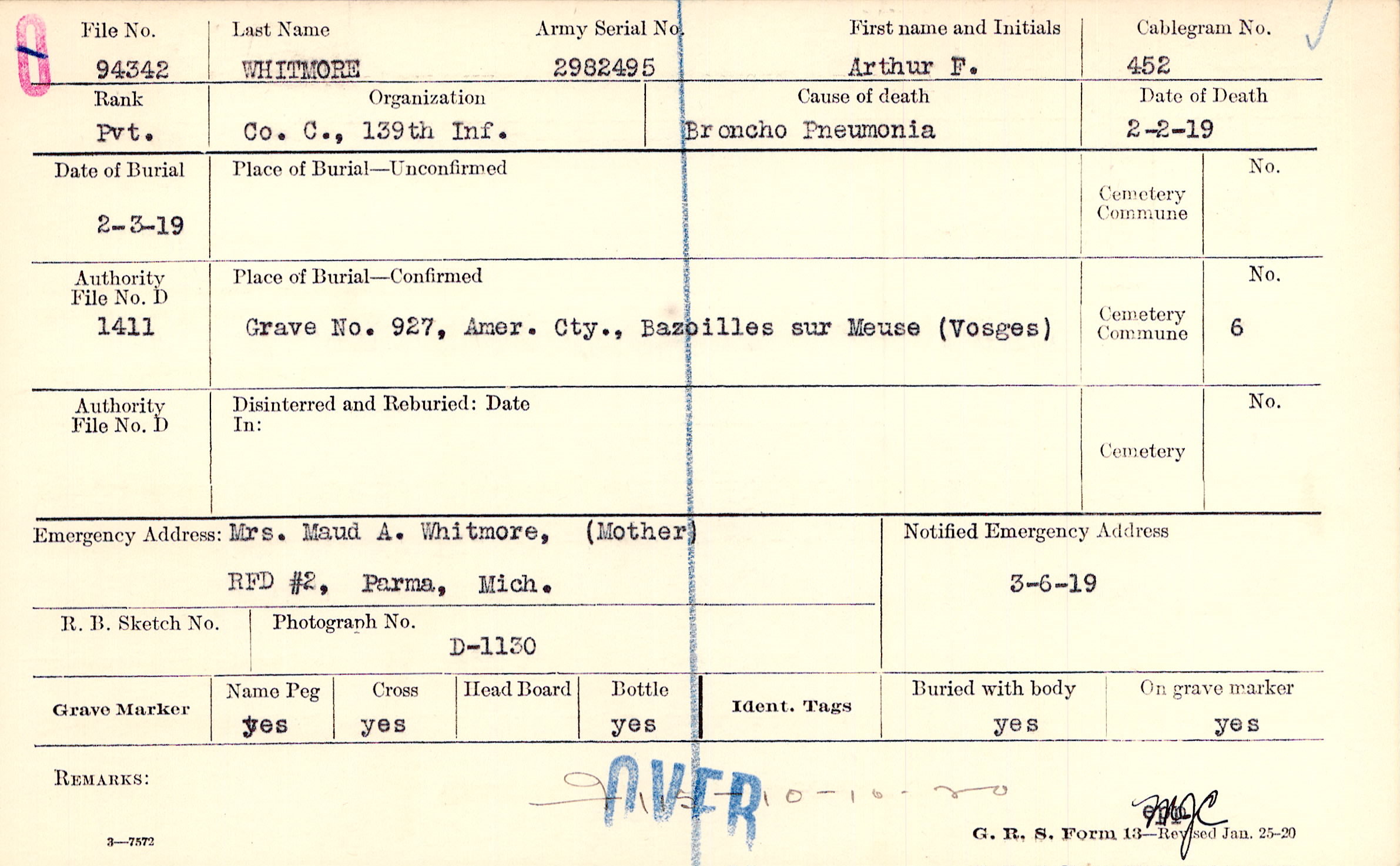 Grave 927, Amer. Cty., Bazoilles sur Meuse (Vosges)