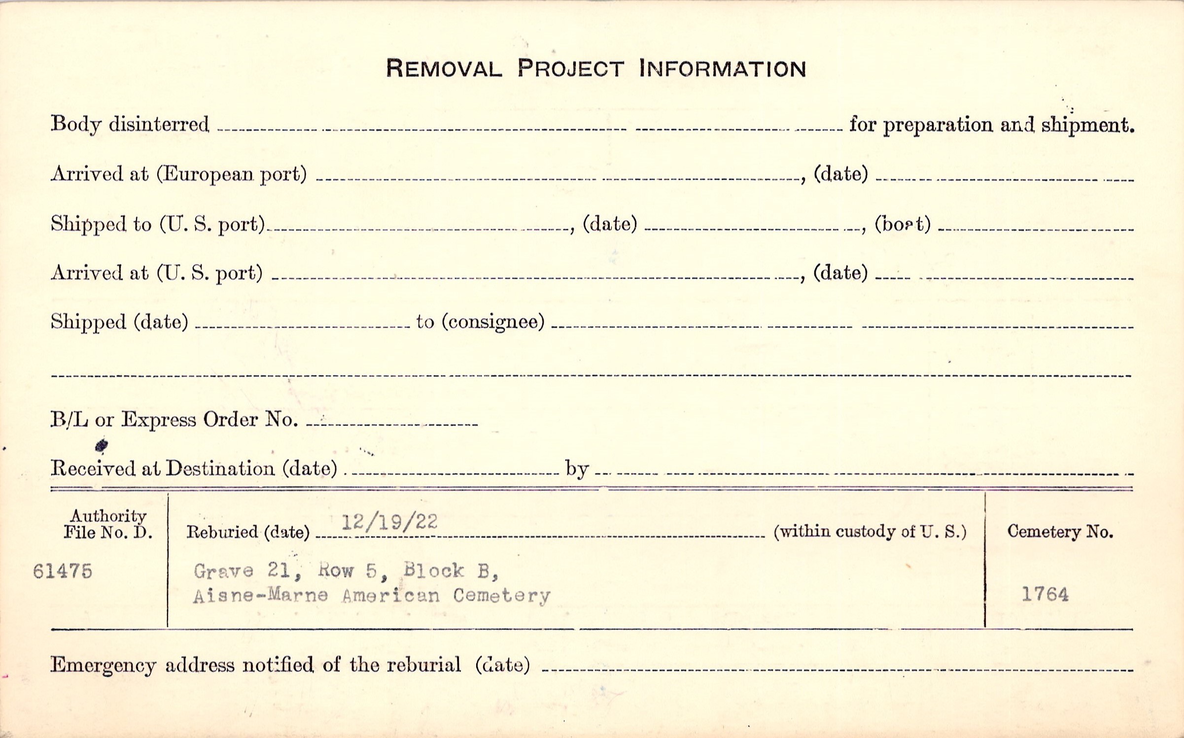 | Permanent Burial in Foreign Cemetery |