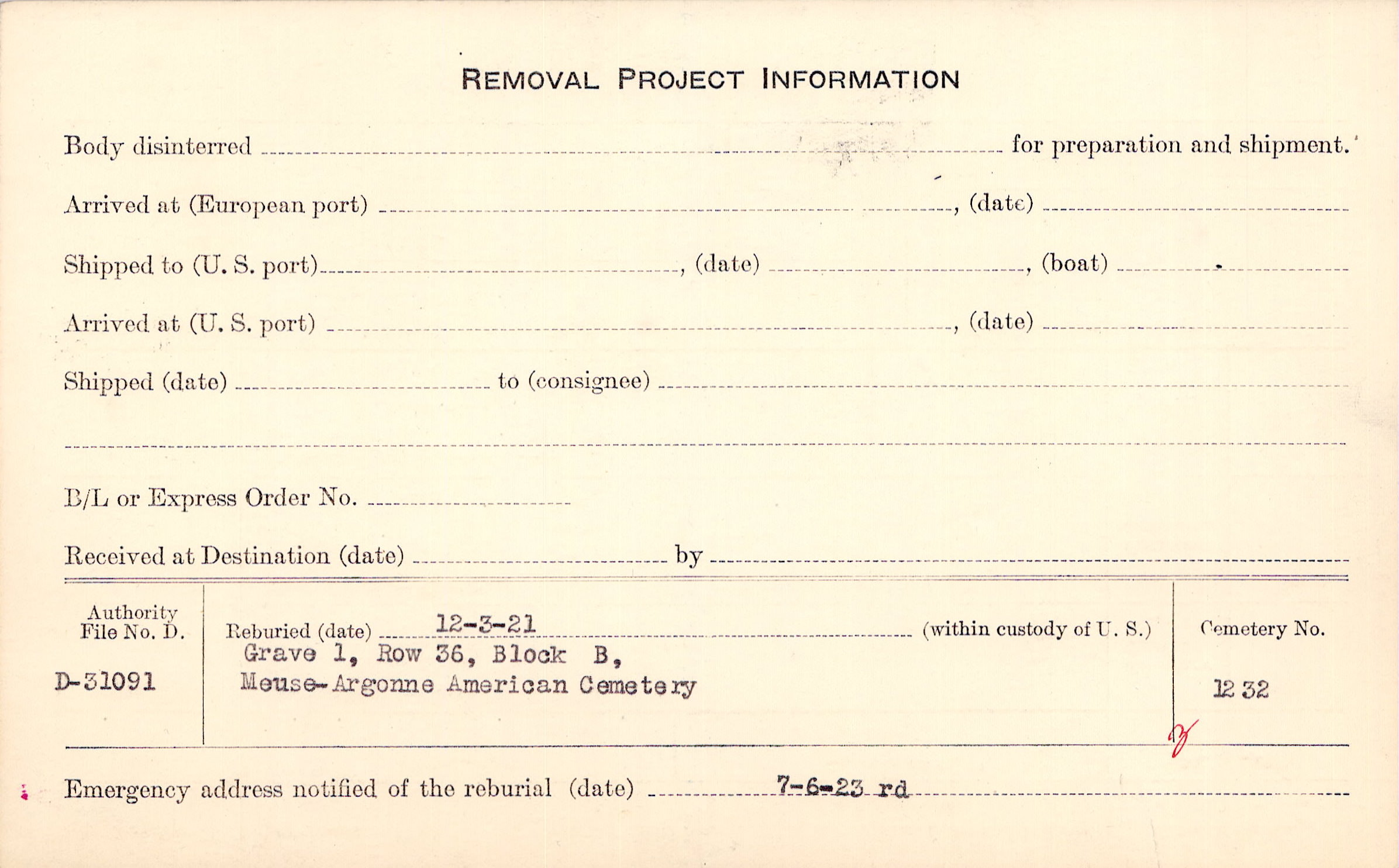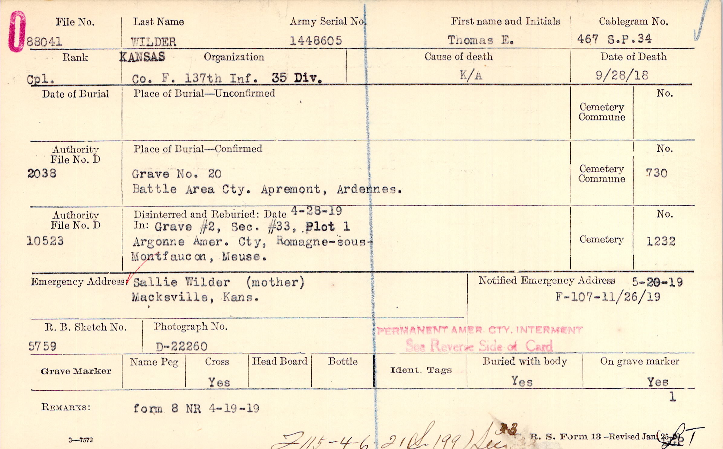 Grave 20, Battle Area Cty., Apremont, Ardennes.