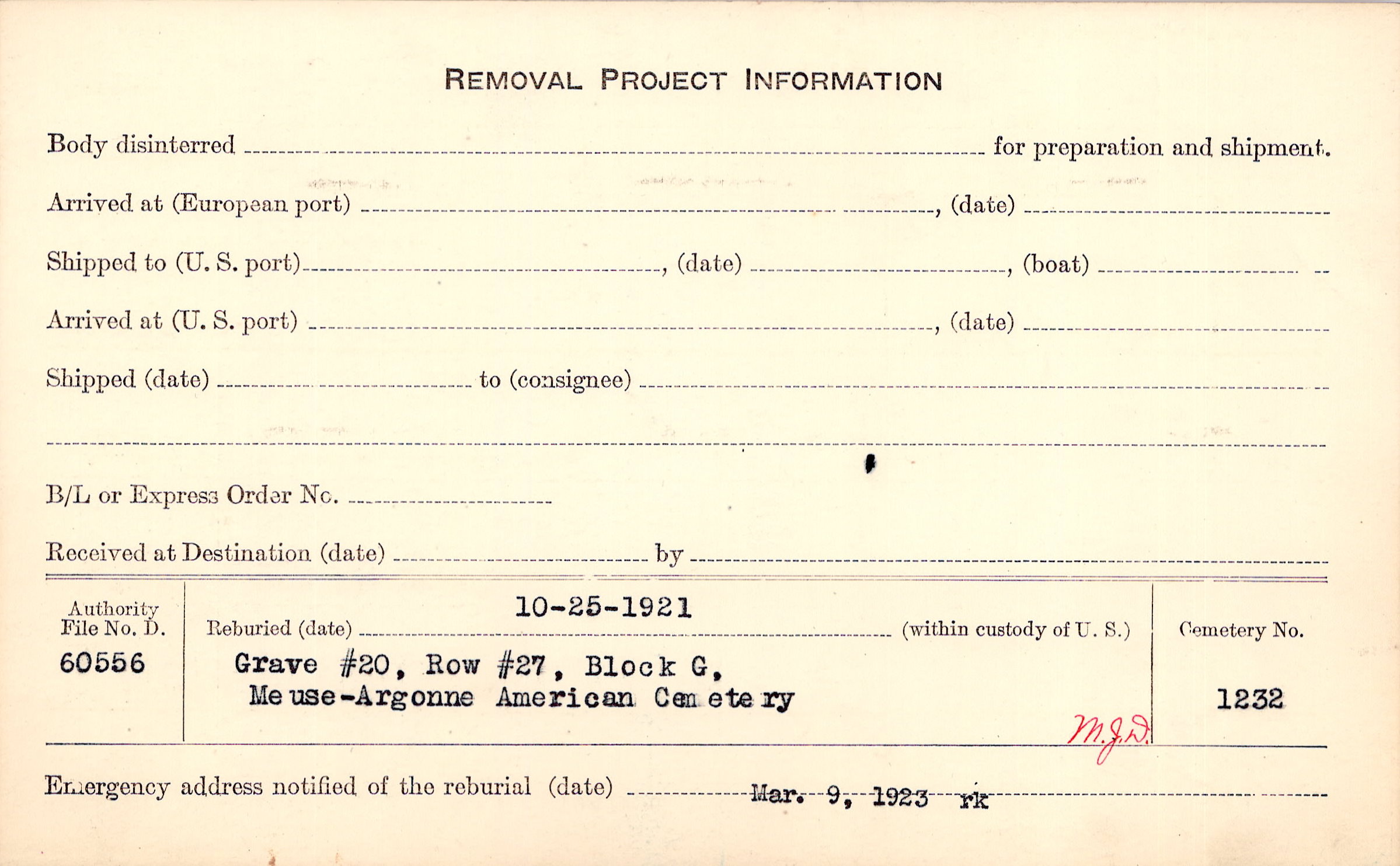 | Permanent Burial in Foreign Cemetery |