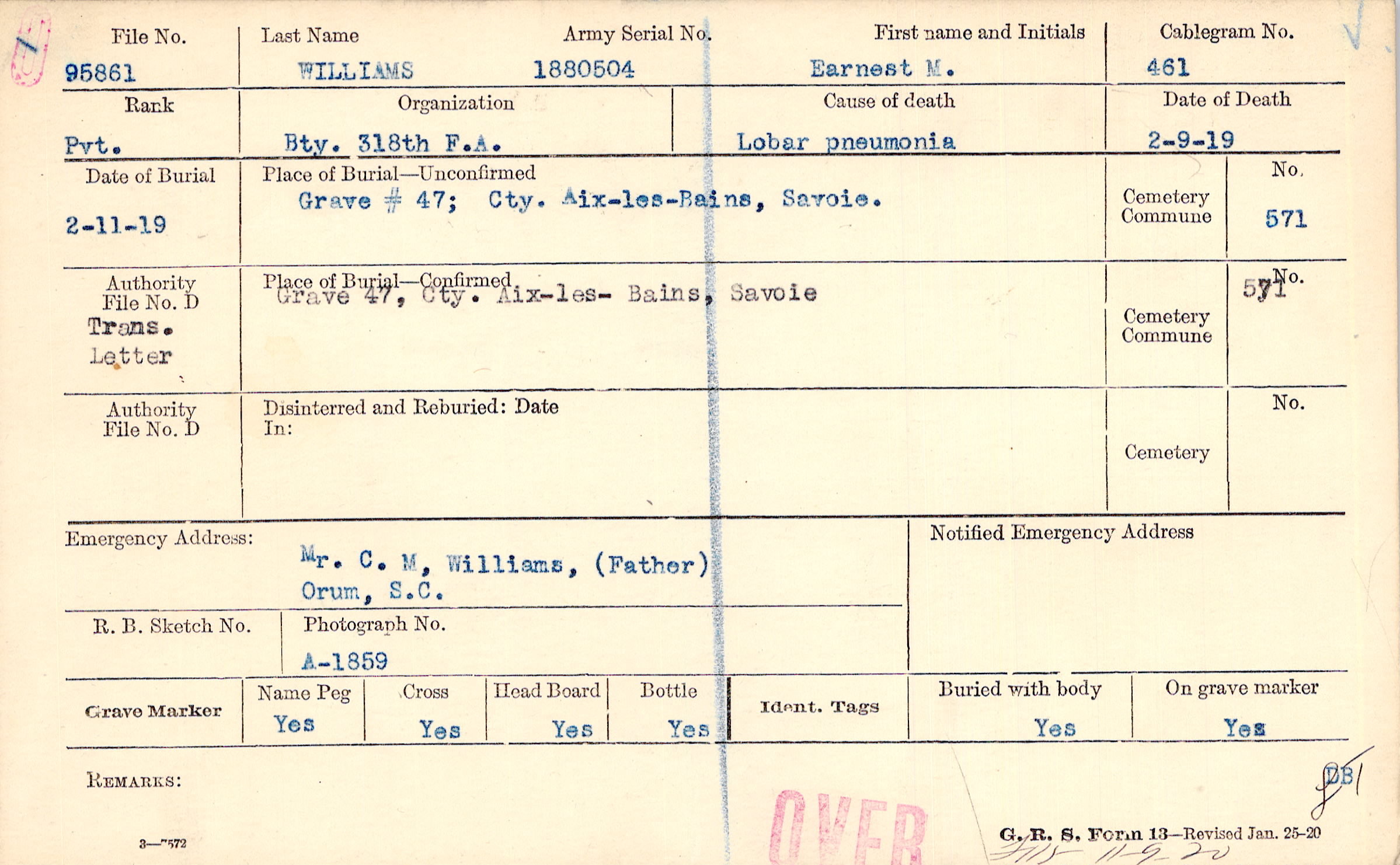 Mr. C. M, Williams, (Father), Orum, S.C.