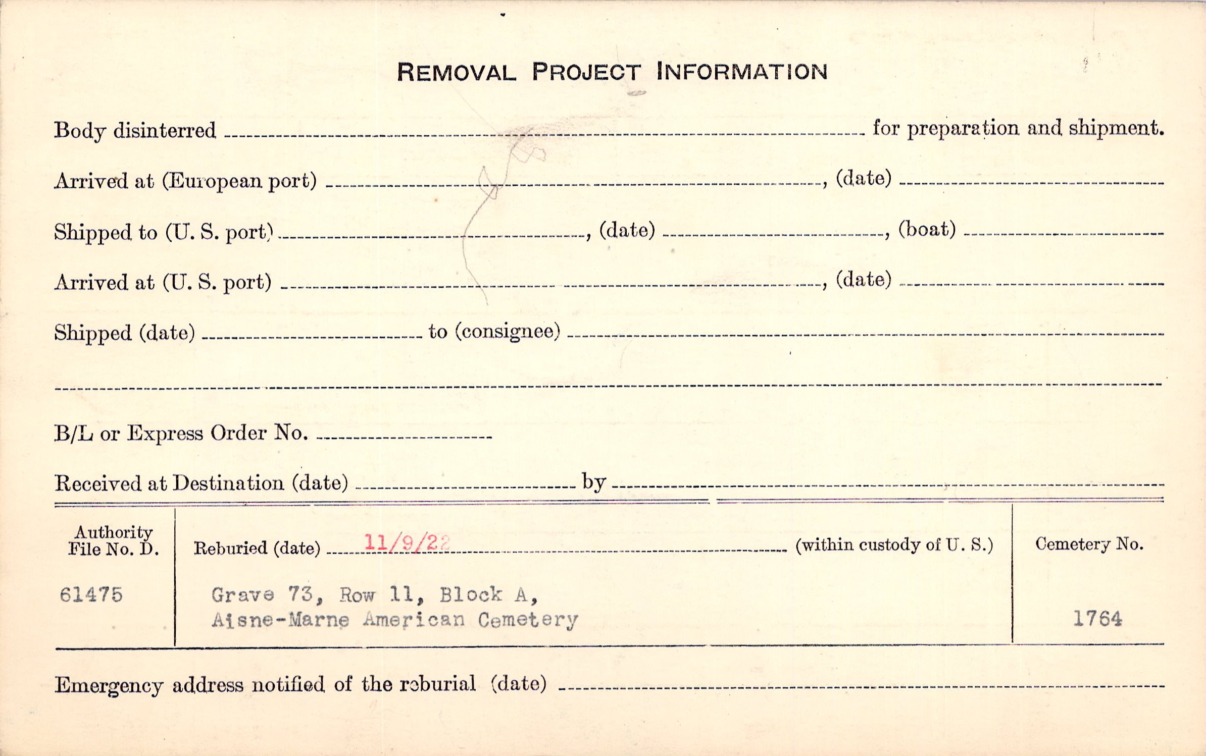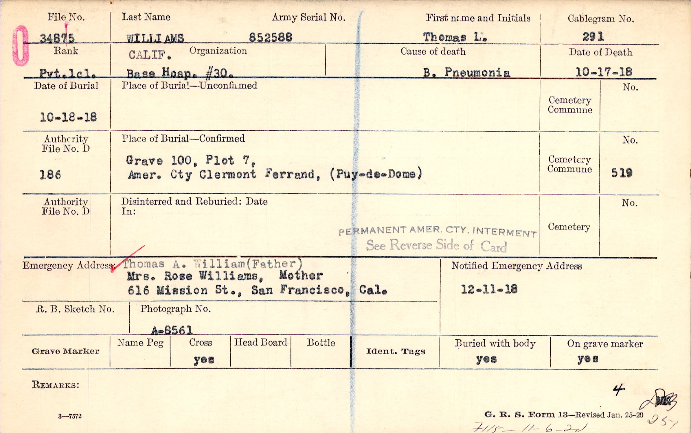 Grave 100, Plot 7, Amer. Cty., Clermont, Ferrand, Puy-de-Dome