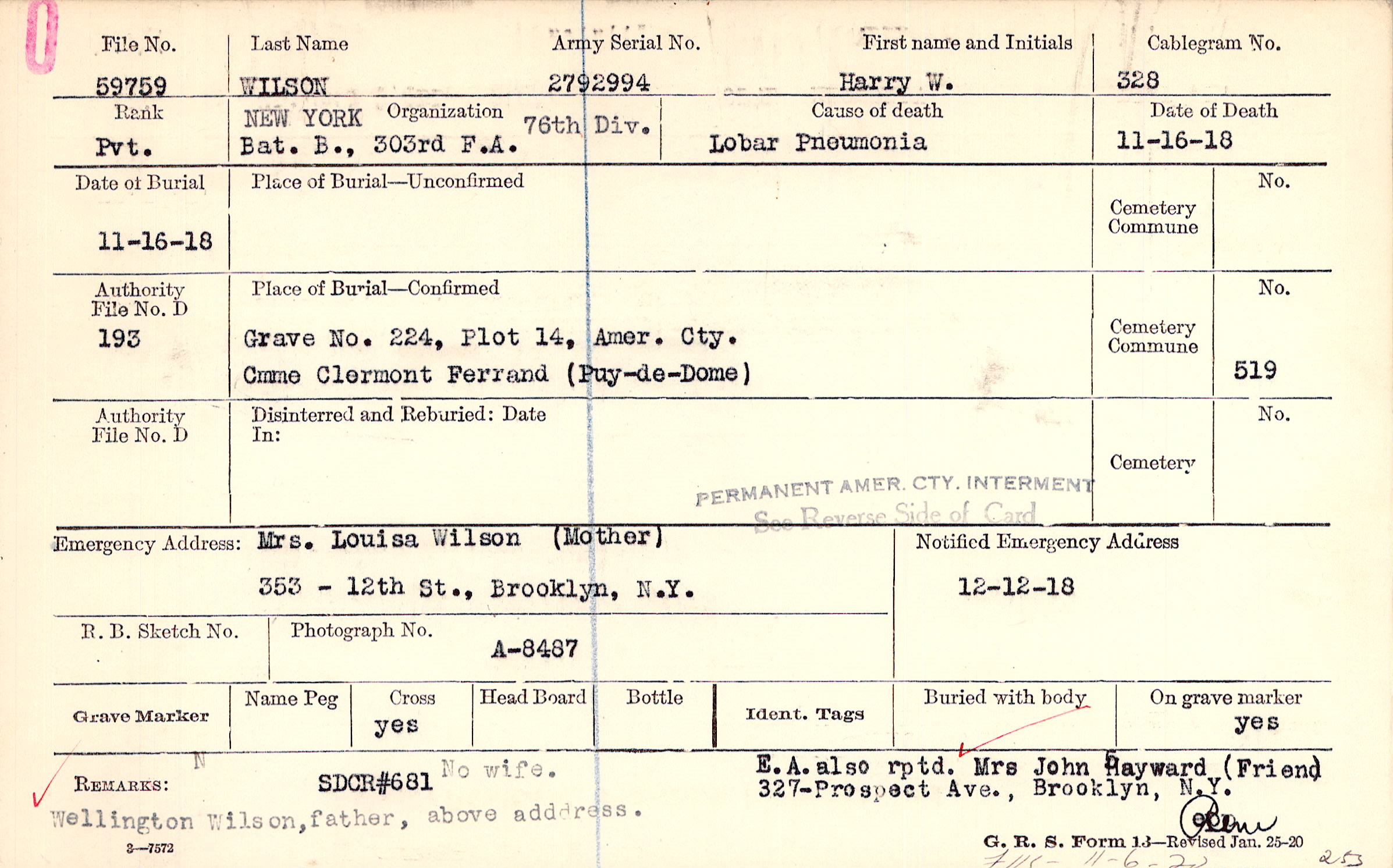 Mrs. Louisa Wilson (Mother), 353 - 12th St., Brooklyn, N.Y.
