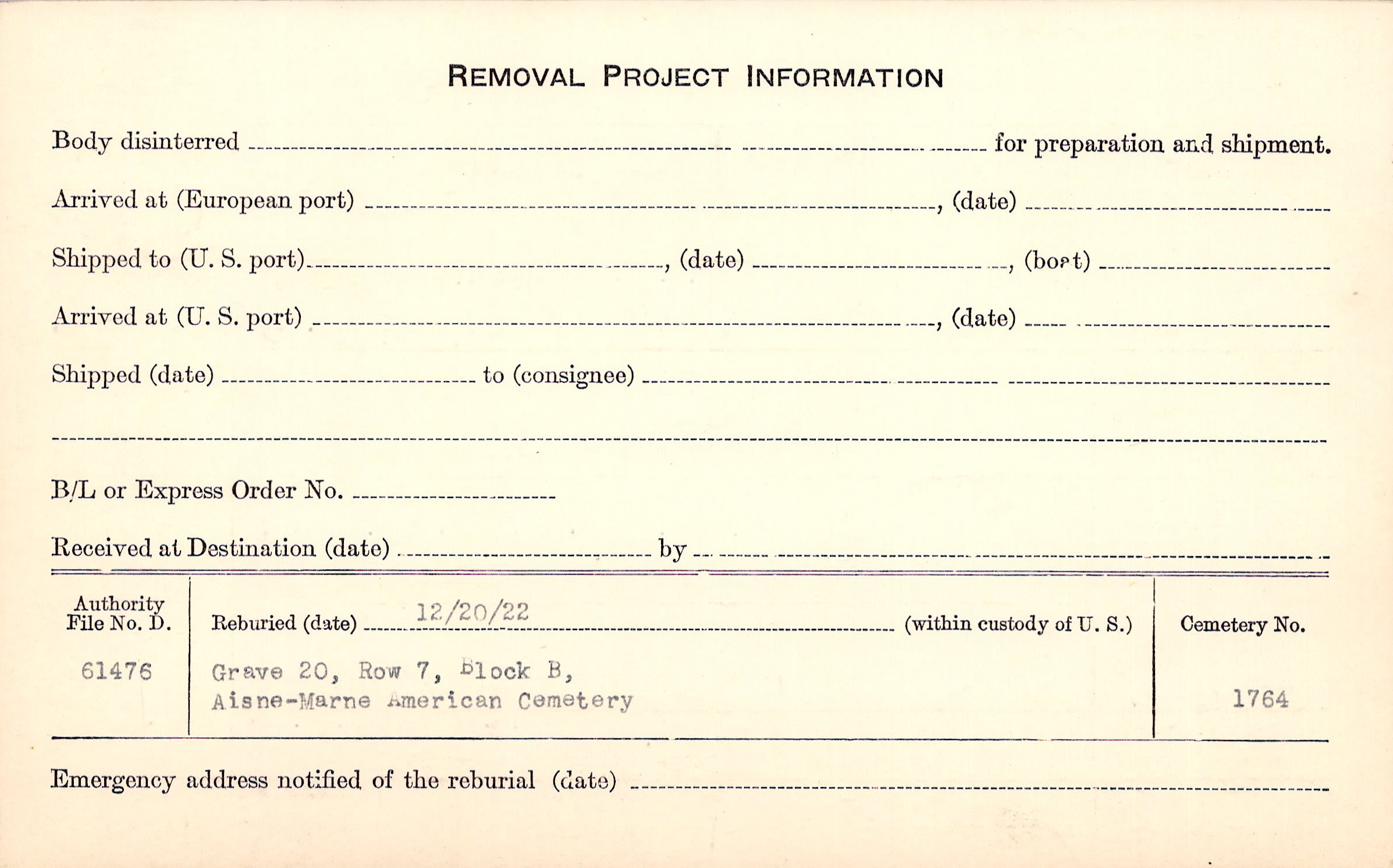 Grave 224, Plot 14, Amer. Cty., Cmme. Clermont Ferrand, Puy-de-Dome.