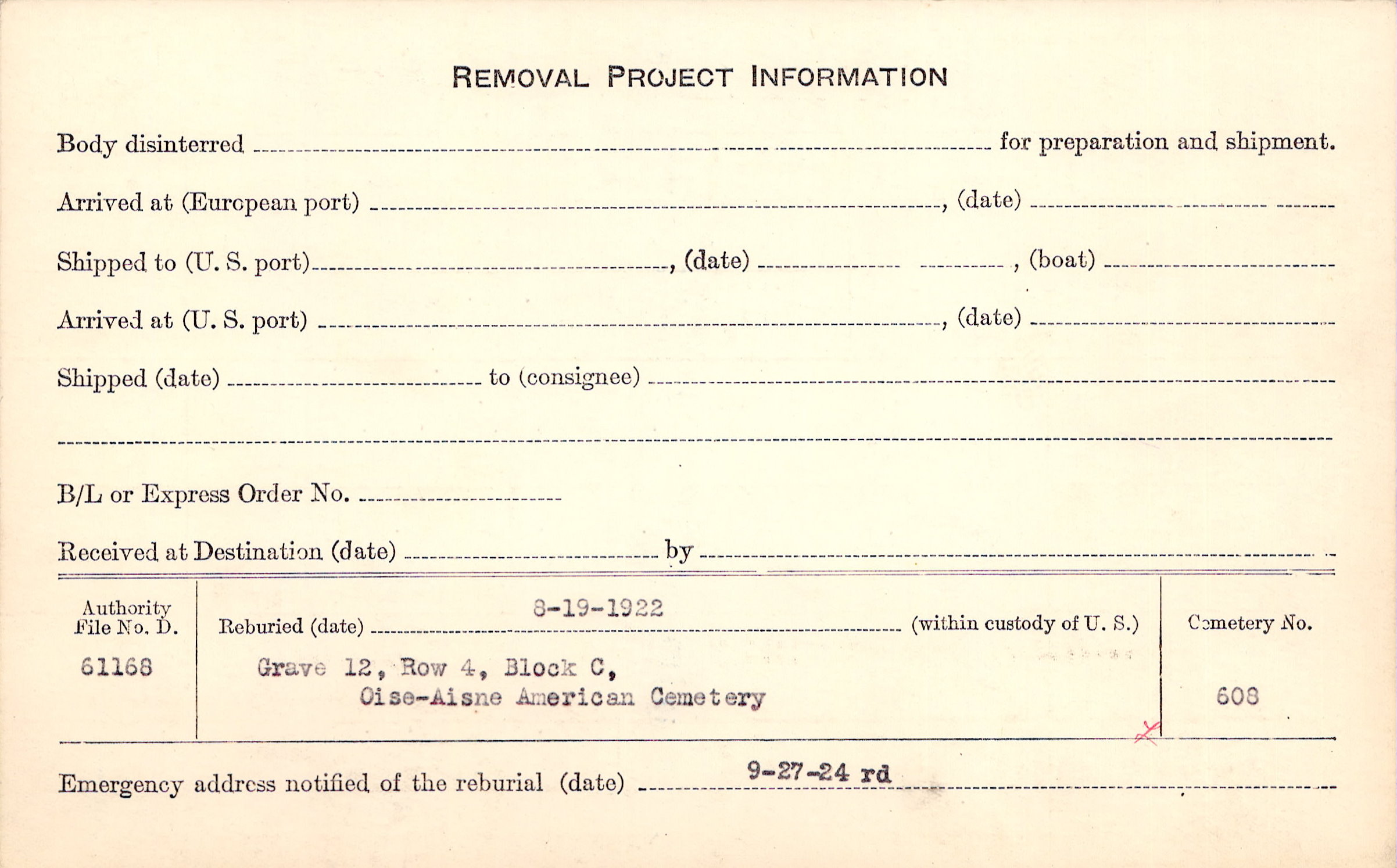 Grave 91, Section G, Plot 2, American B/A Cemetery, Fismes, Marne