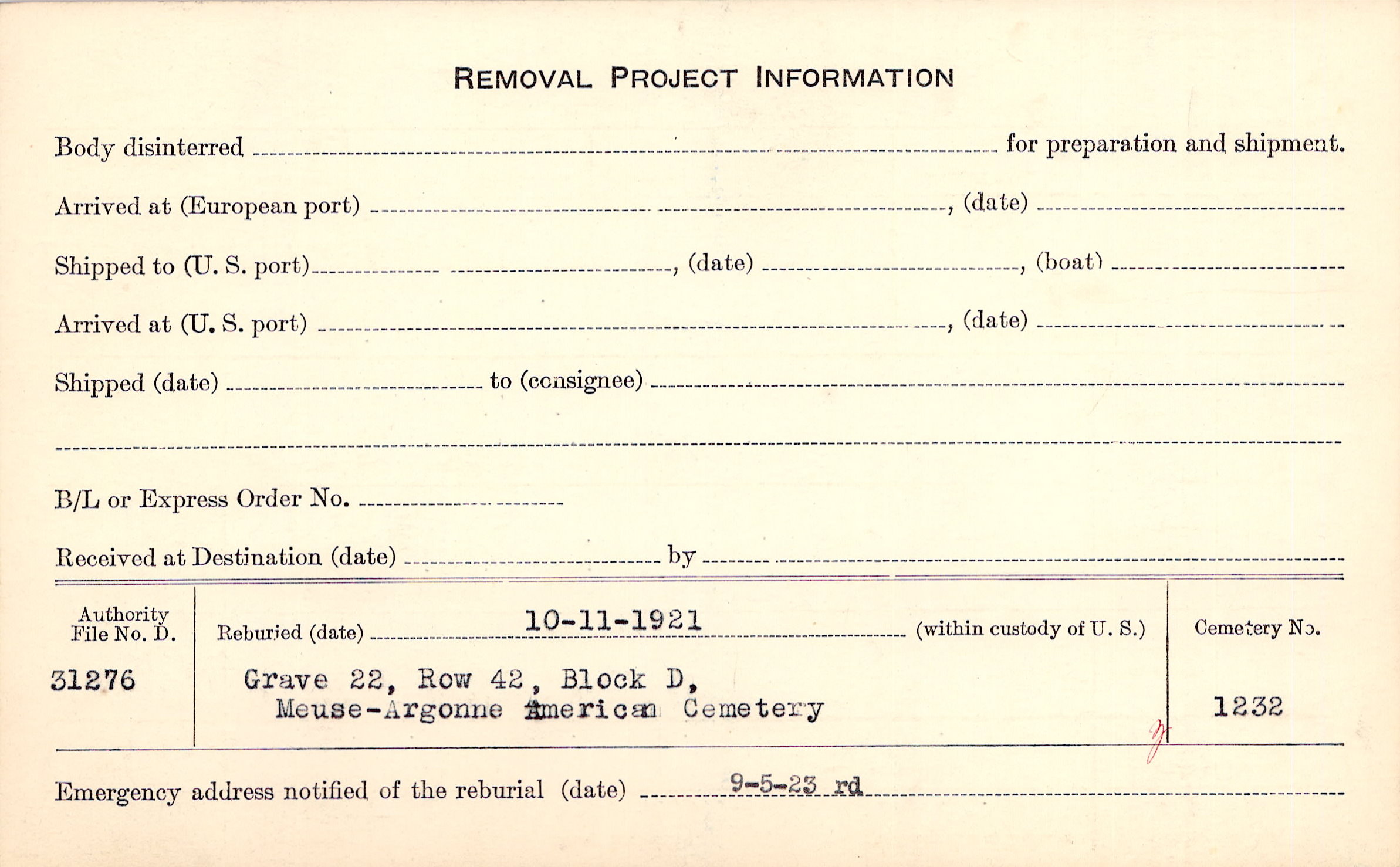 | Permanent Burial in Foreign Cemetery |