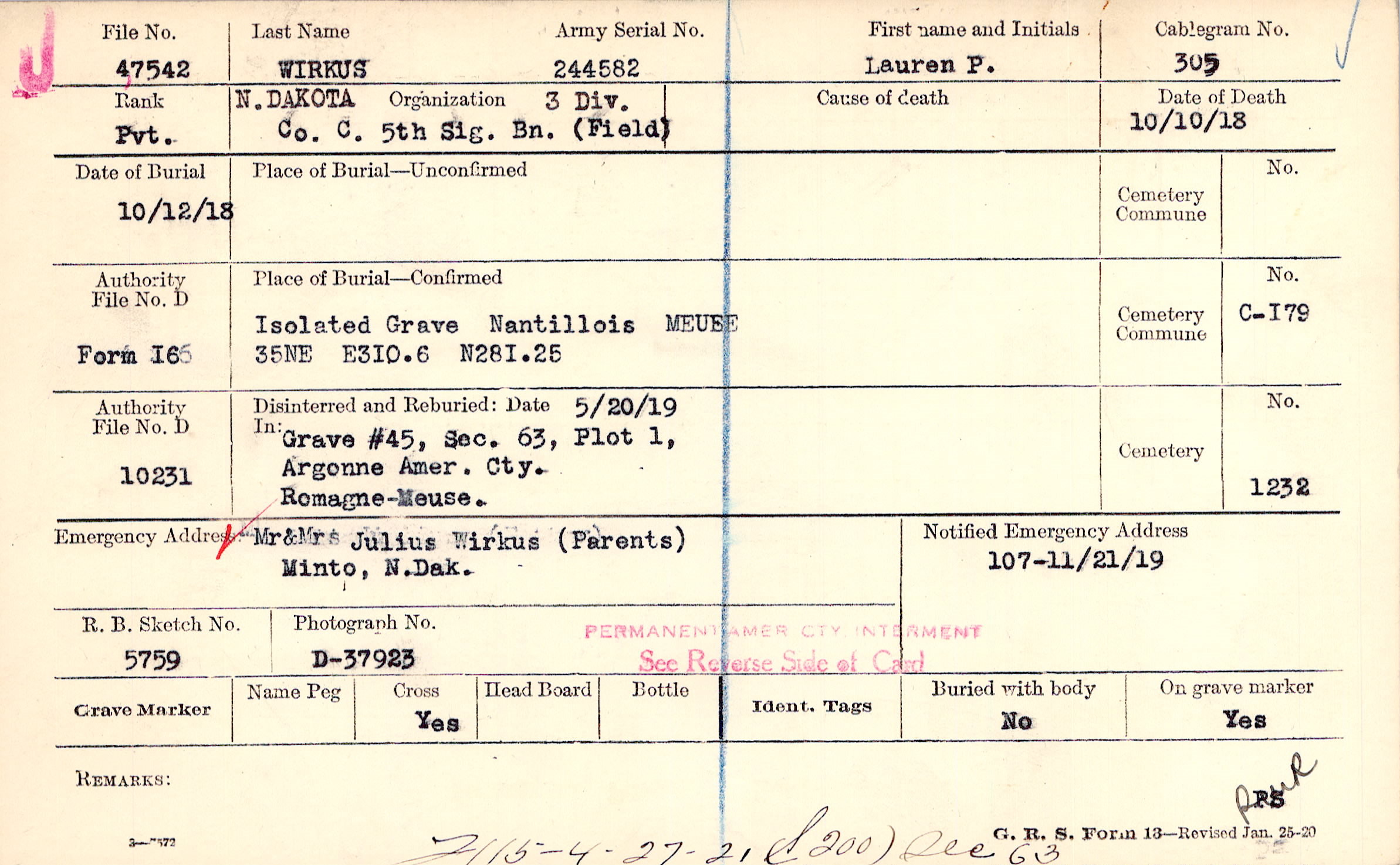 Isolated Grave, Nantillois, MEUSE, 35 NE