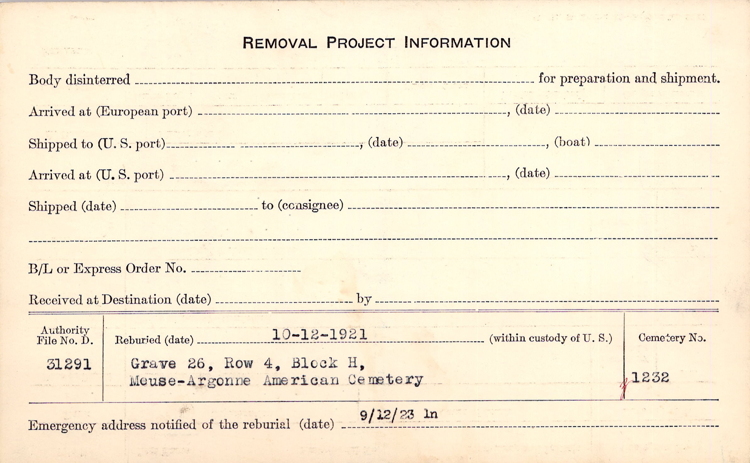 Grave 45, Section 63, Plot 1, Argonne American Cemetery, Romagne-sous-Montfaucon, Meuse