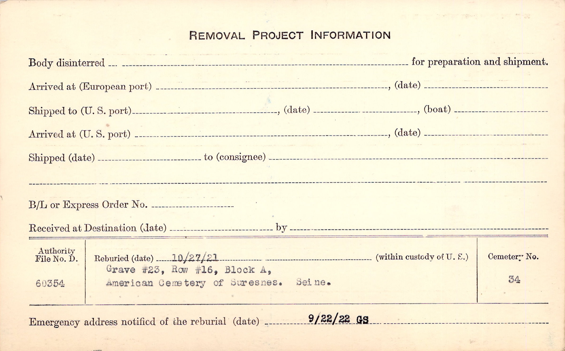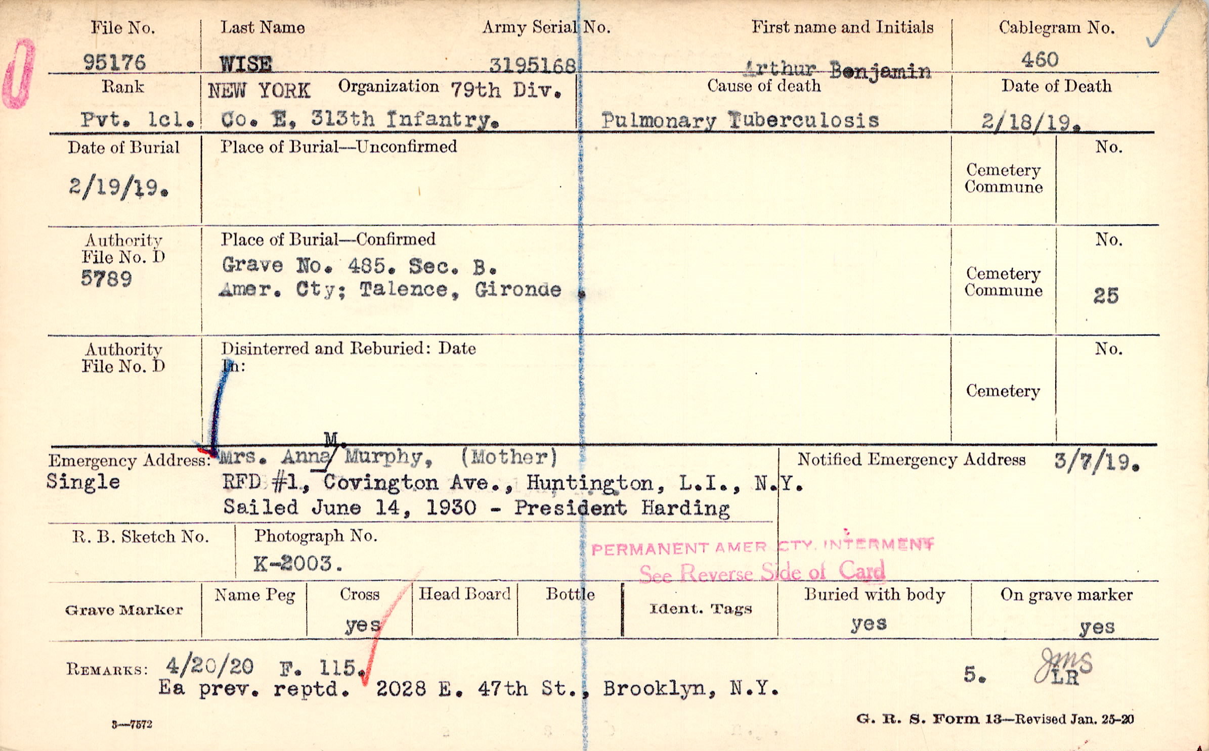 Grave 485., Sec. B., Amer. Cty;, Talence, Gironde.