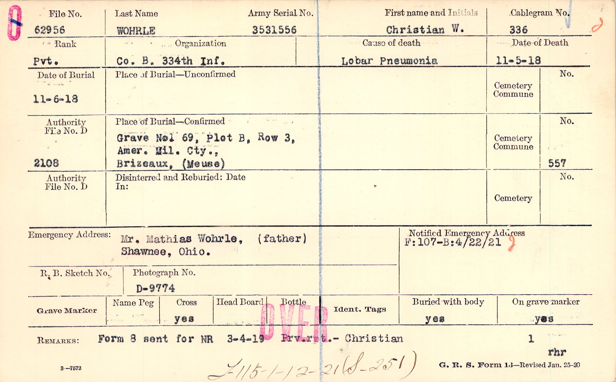 Mr. Mathias Wohrle, (father), Shawnee, Ohio.