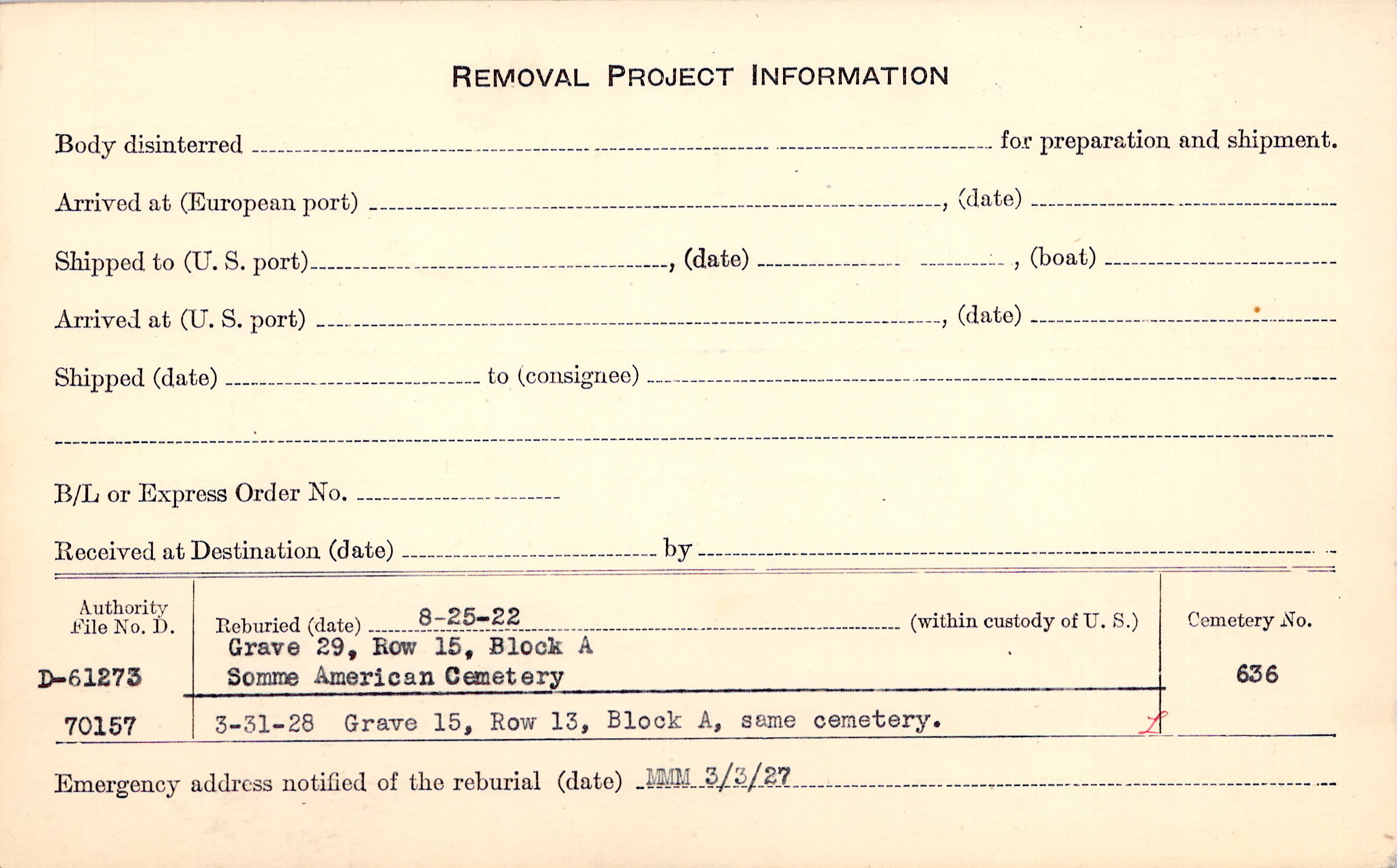 Prior Burial in Foreign Cemetery |