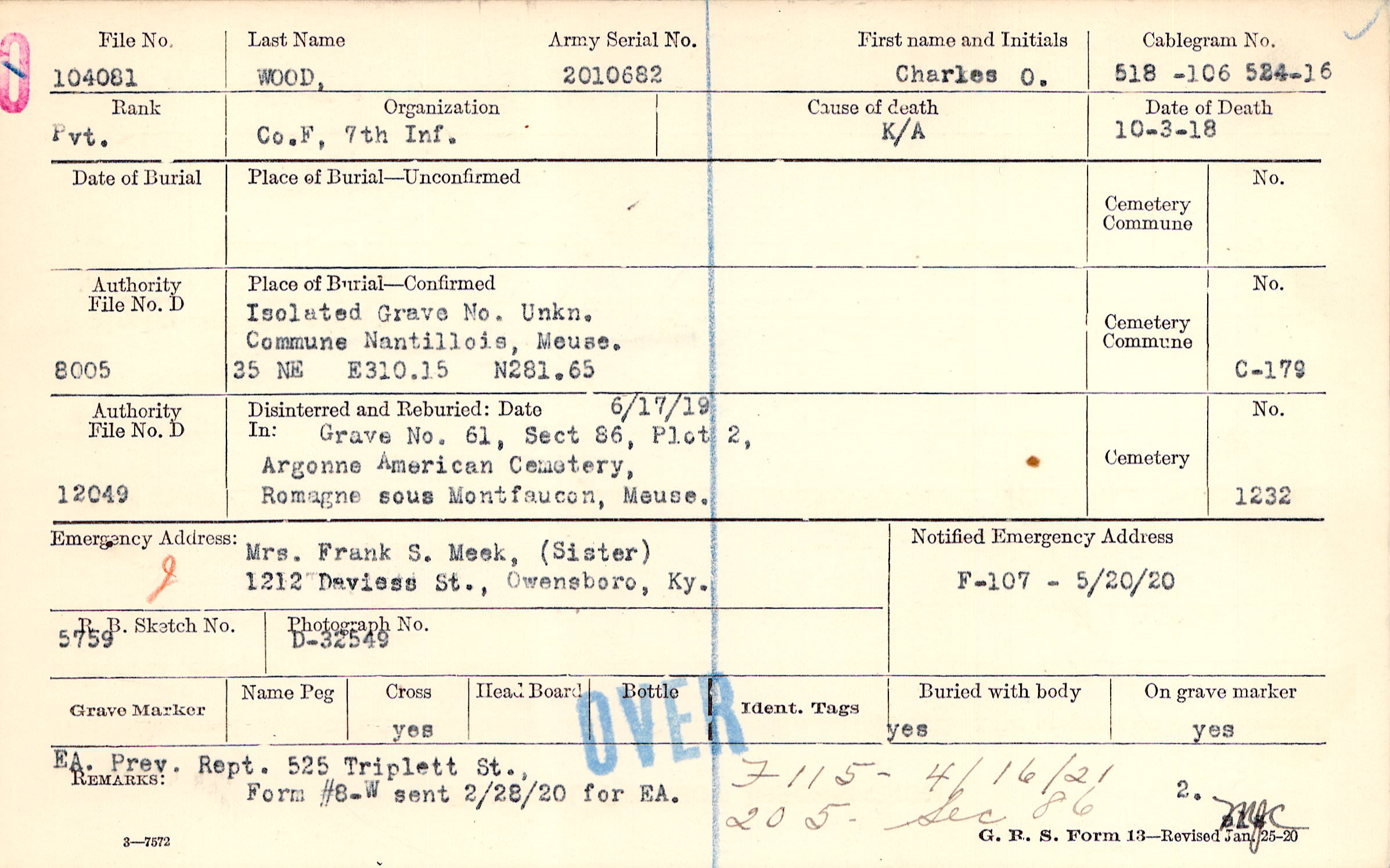 Isolated Grave Unkn., Commune Nantillois, Meuse., 35 NE