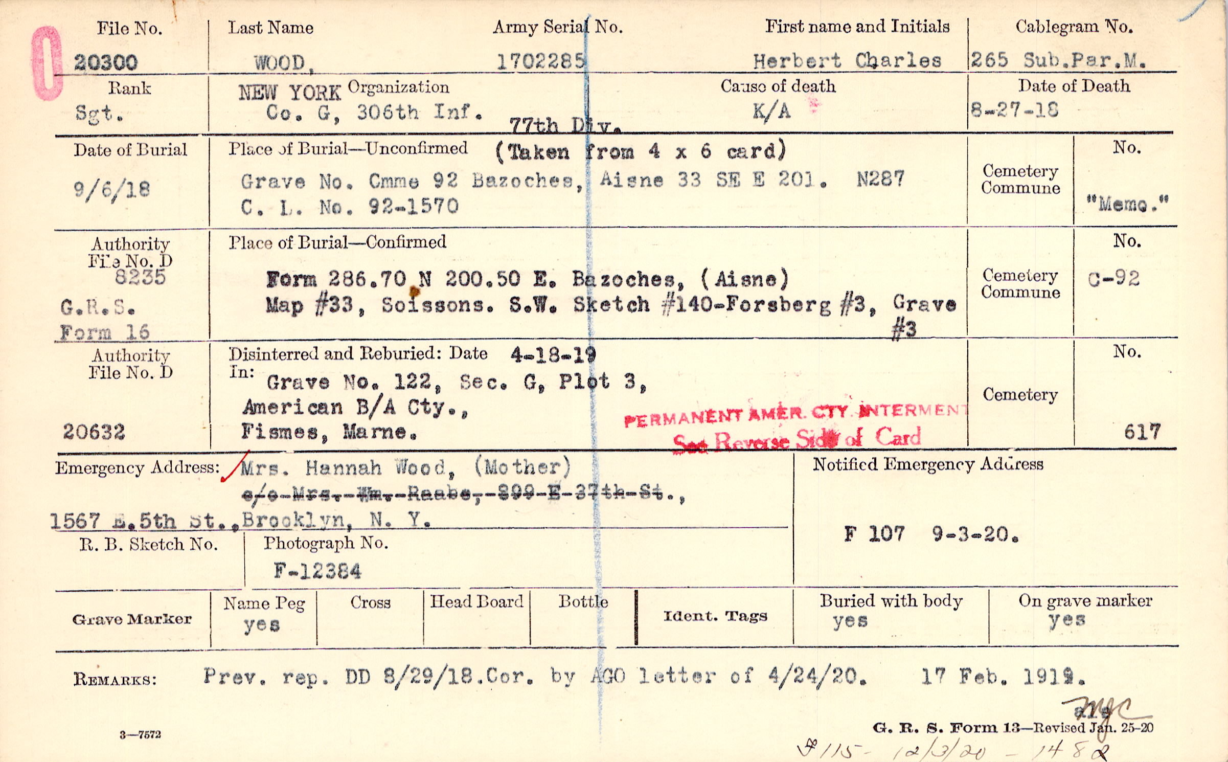 Prev. rep. DD 8/29/18.Cor. by AGO letter of 4/24/20. 17 Feb. 1919., F115 - 12/3/20 - 1482