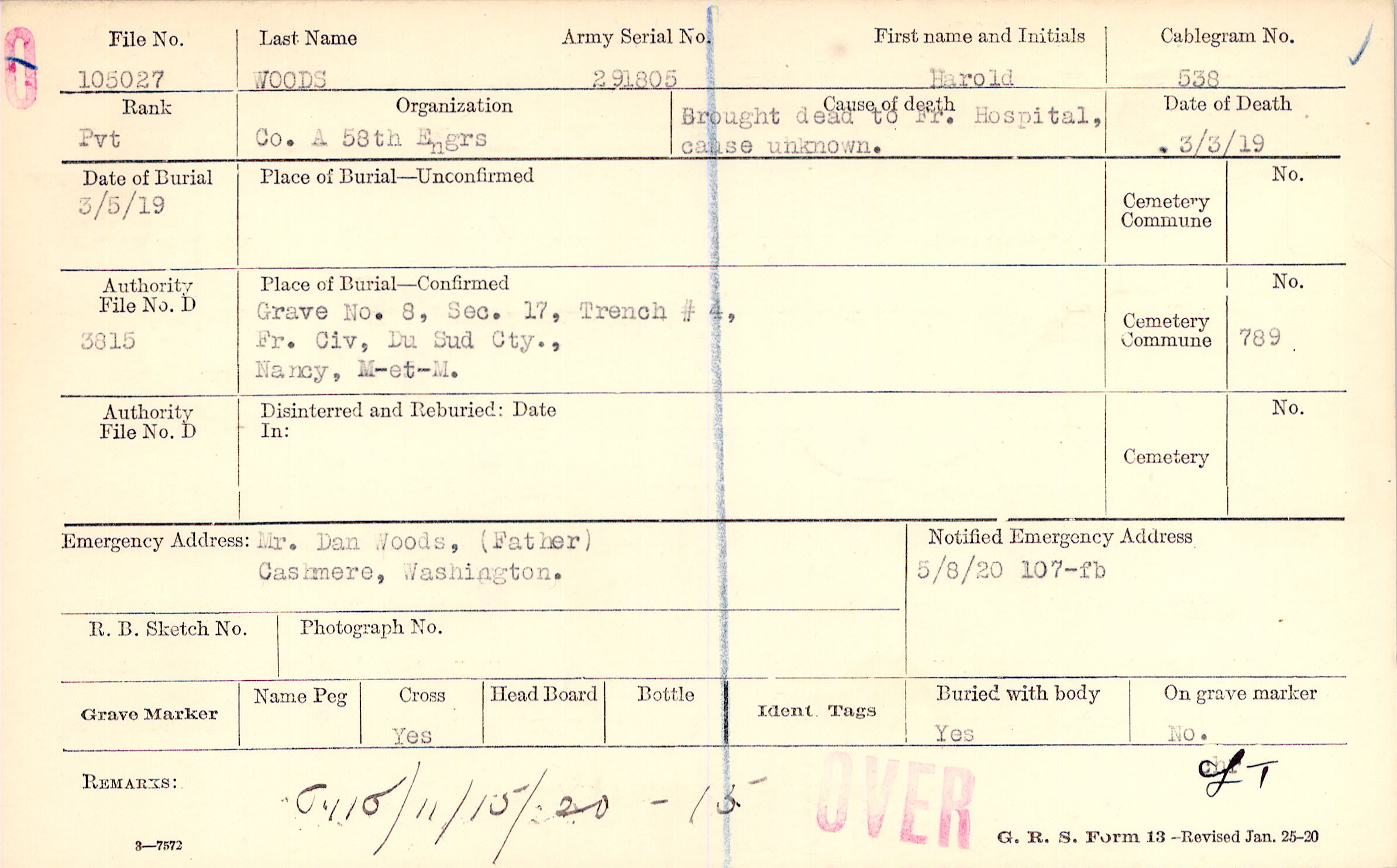 Grave 8, Sec. 17, Trench #4, Fr. Civ., Du Sud Cty., Nancy, M-et-M