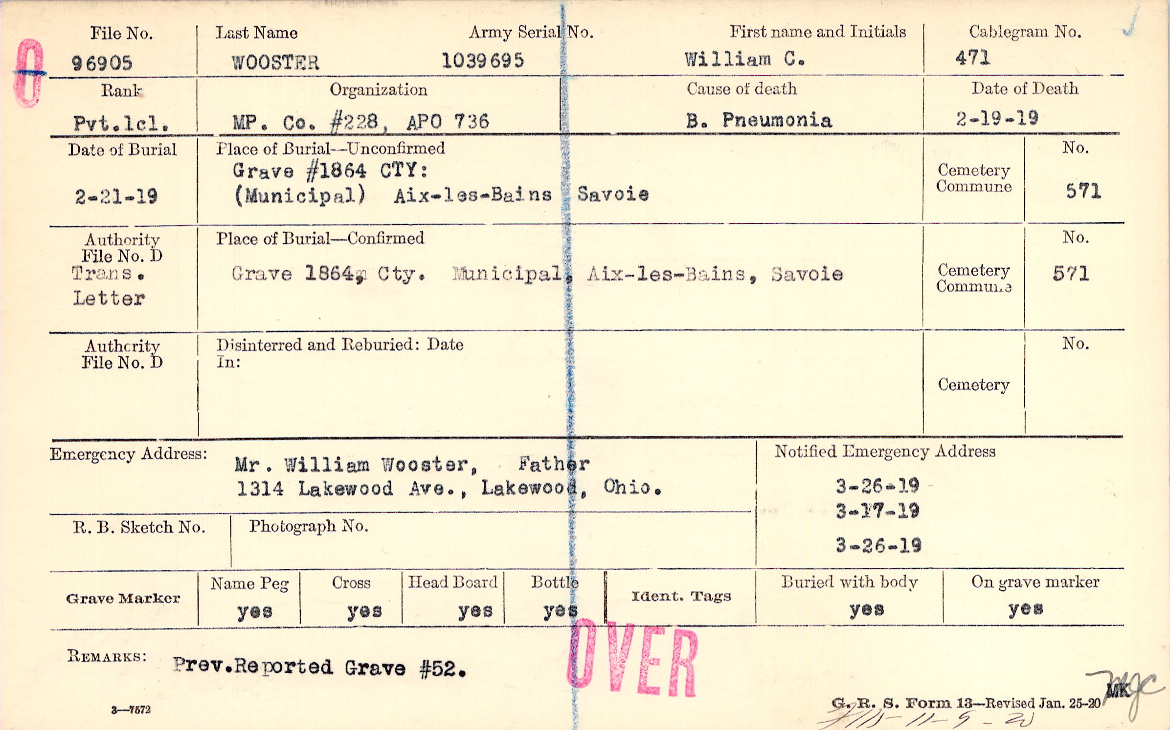Prev. Reported Grave #52.