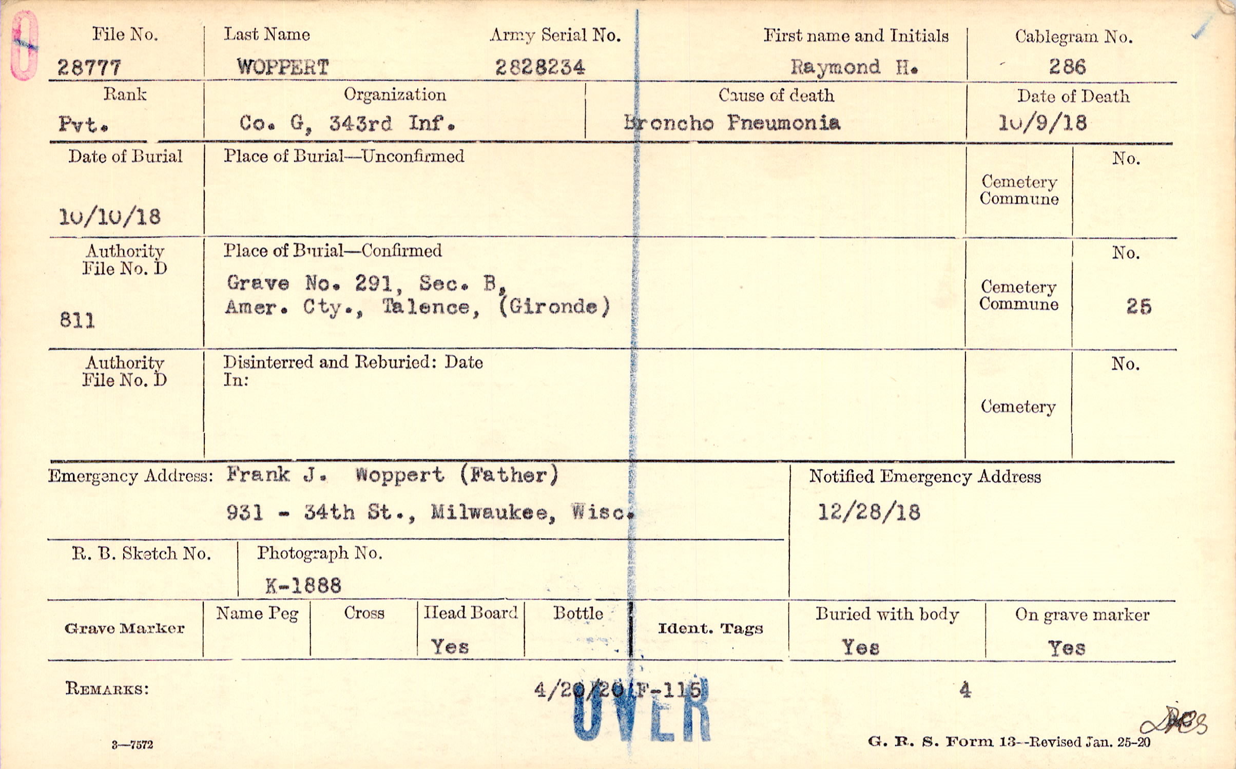 Frank J. Woppert (Father), 931 - 34th St., Milwaukee, Wisc.