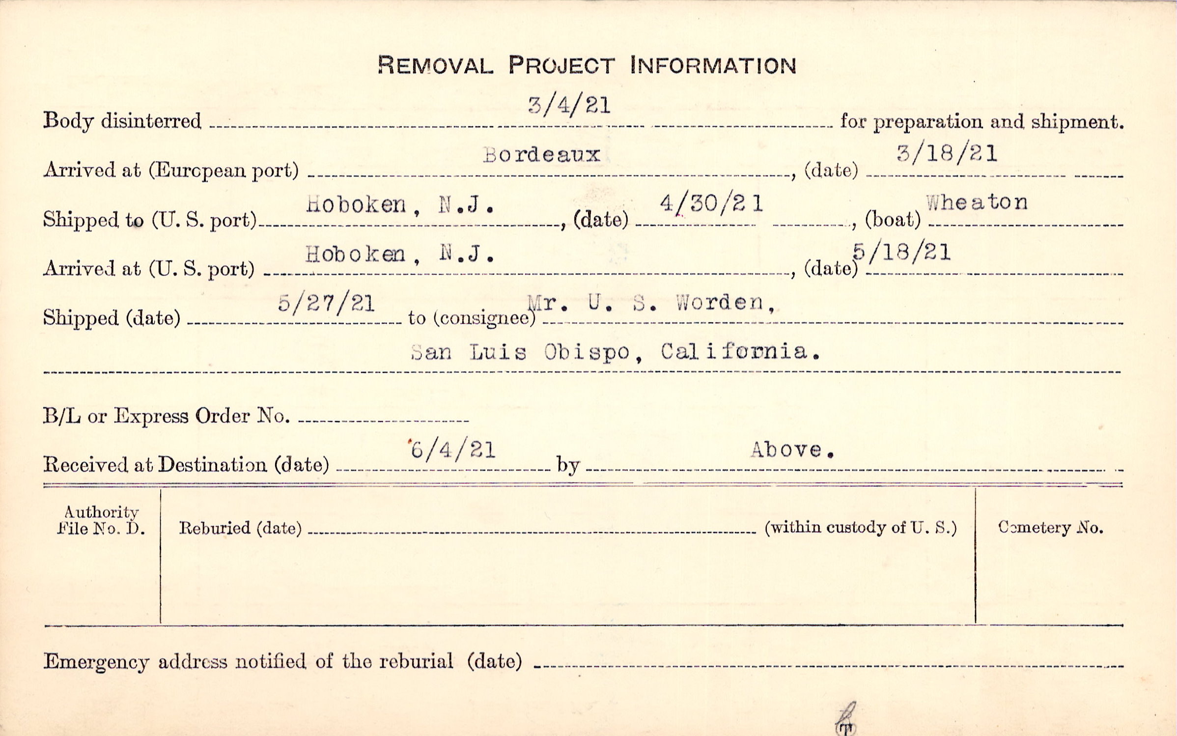 Grave 75, Plot 5, American Cemetery, Clermont Ferrand, Puy-de-Dome