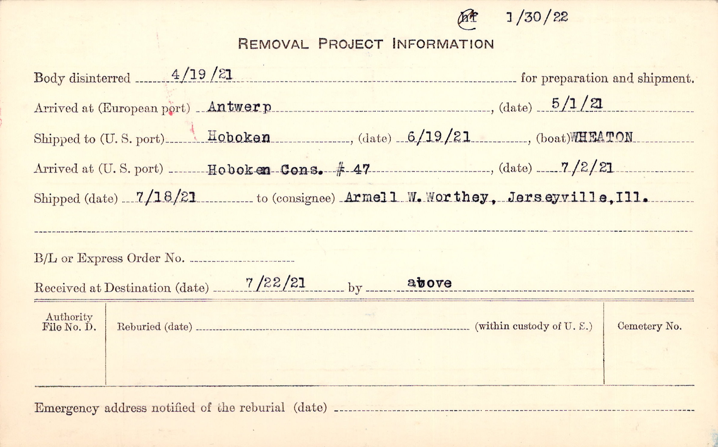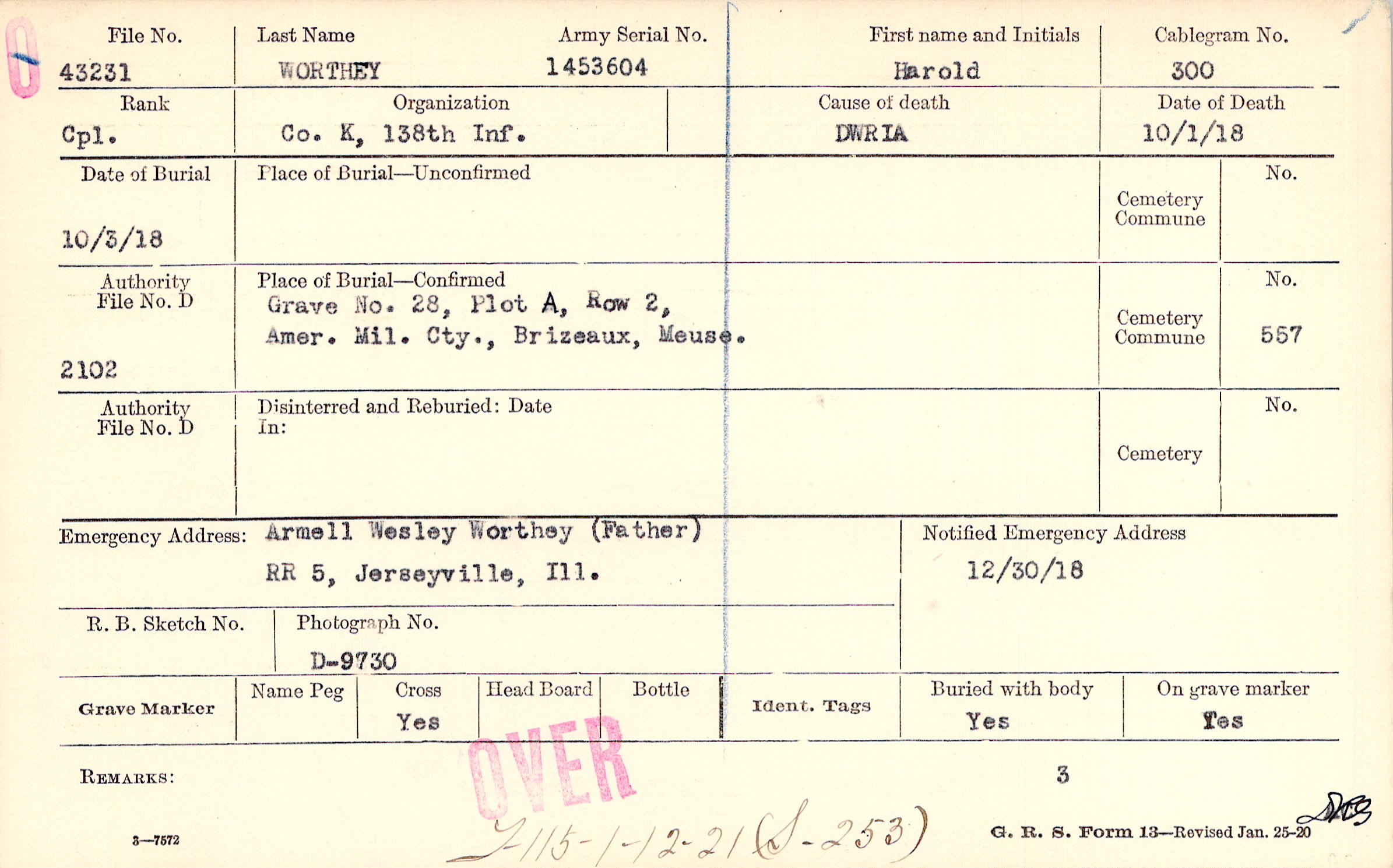 Armell Wesley Worthey (Father), RR 5, Jerseyville, Ill.