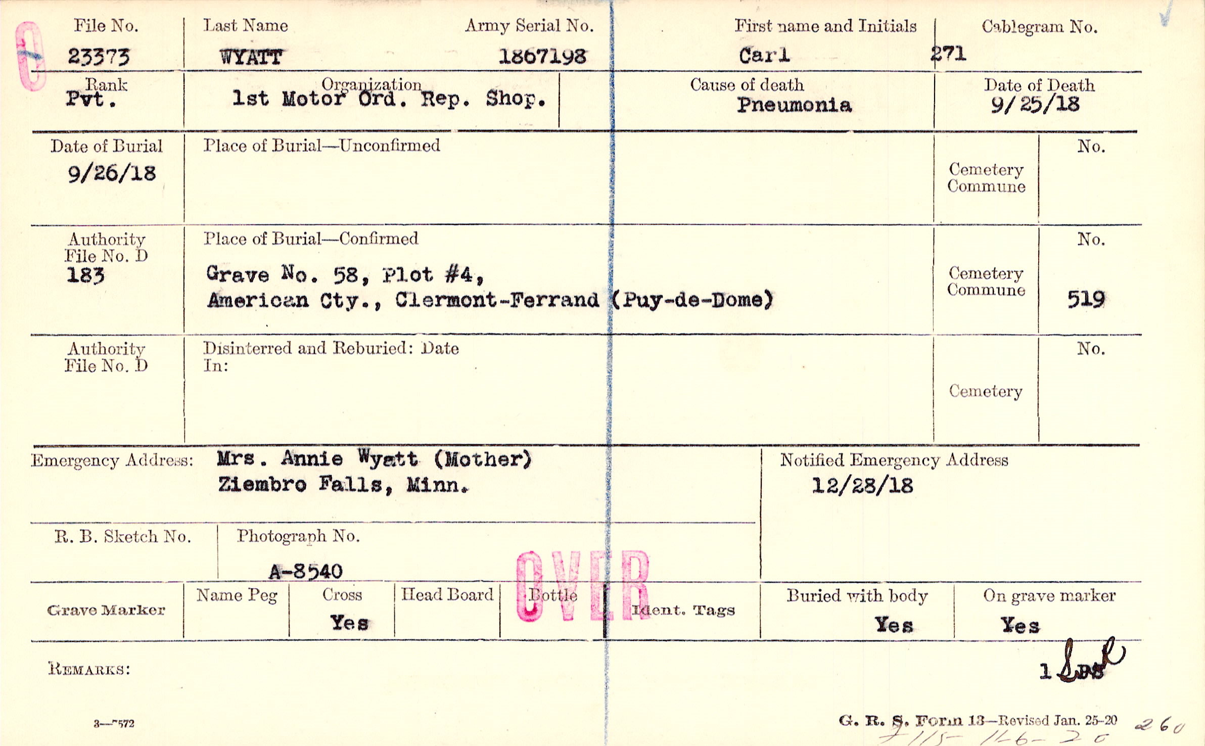 Grave 58, Plot #4, American Cty., Clermont-Ferrand (Puy-de-Dome)