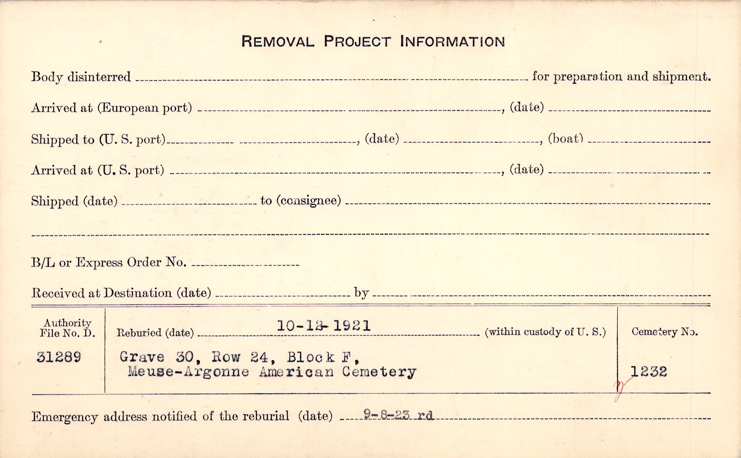 Isolated Grave, Unkn., Commune Nantillois, Meuse.,35 NE