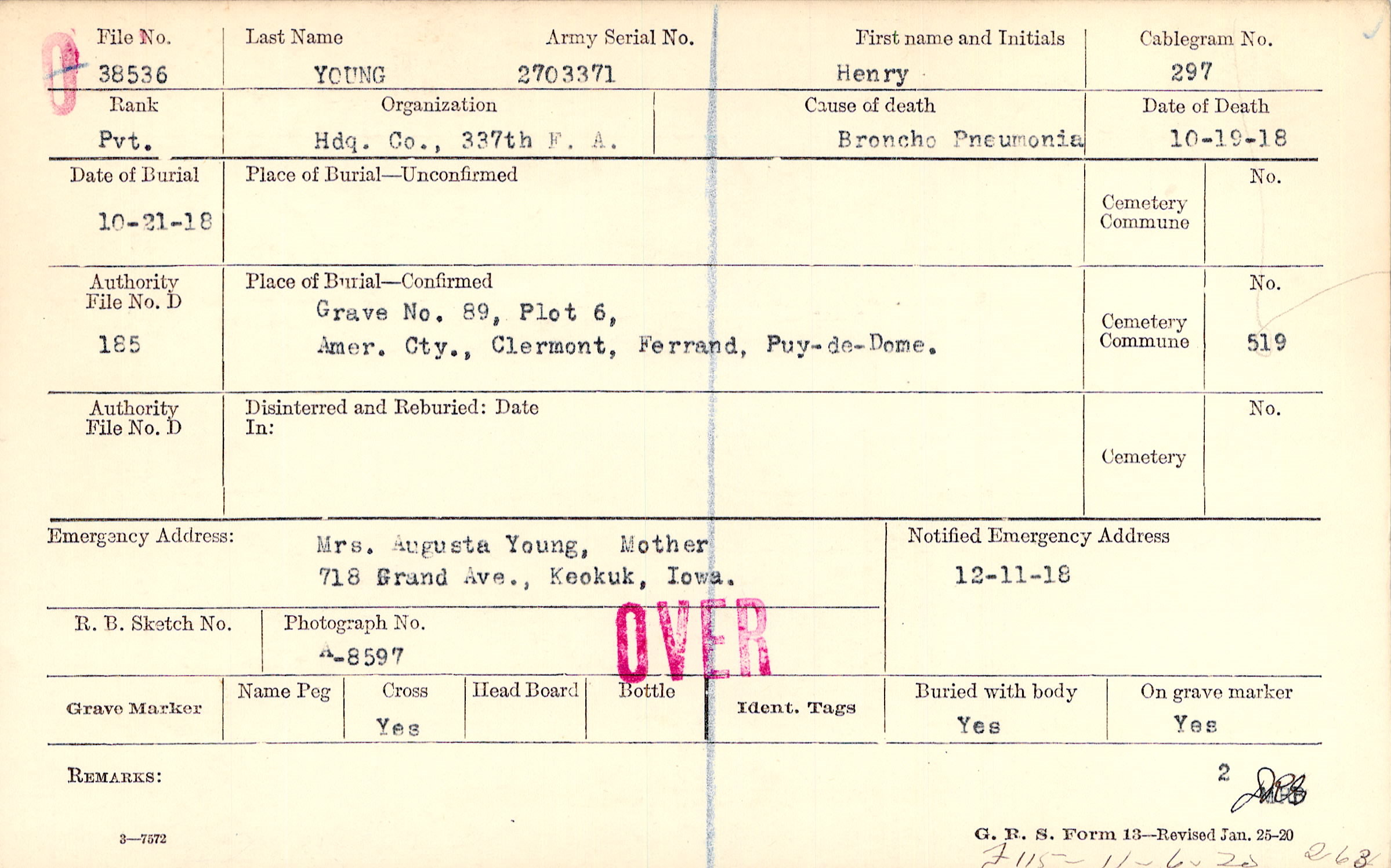 Grave 89, Plot 6, Amer. Cty., Clermont, Ferrand, Puy-de-Dome