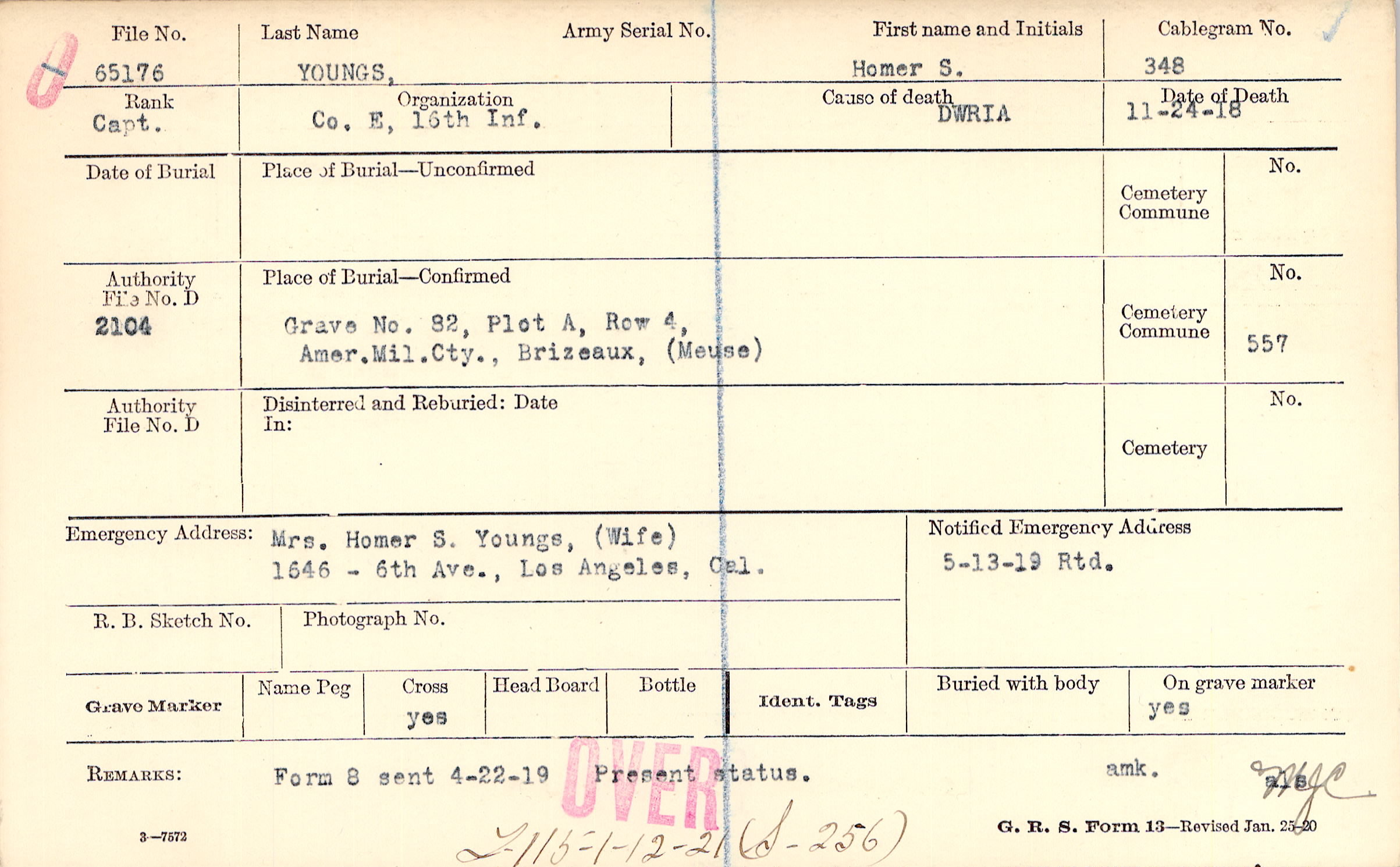 Mrs. Homer S. Youngs, (Wife), 1646 - 6th Ave., Los Angeles, Cal.