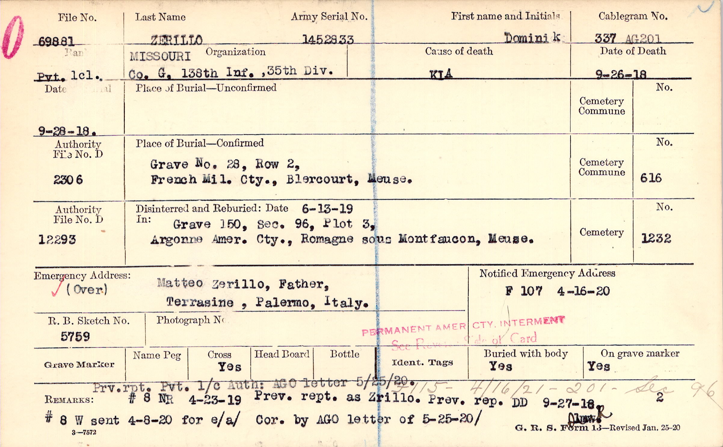 | Reburied (date): |
