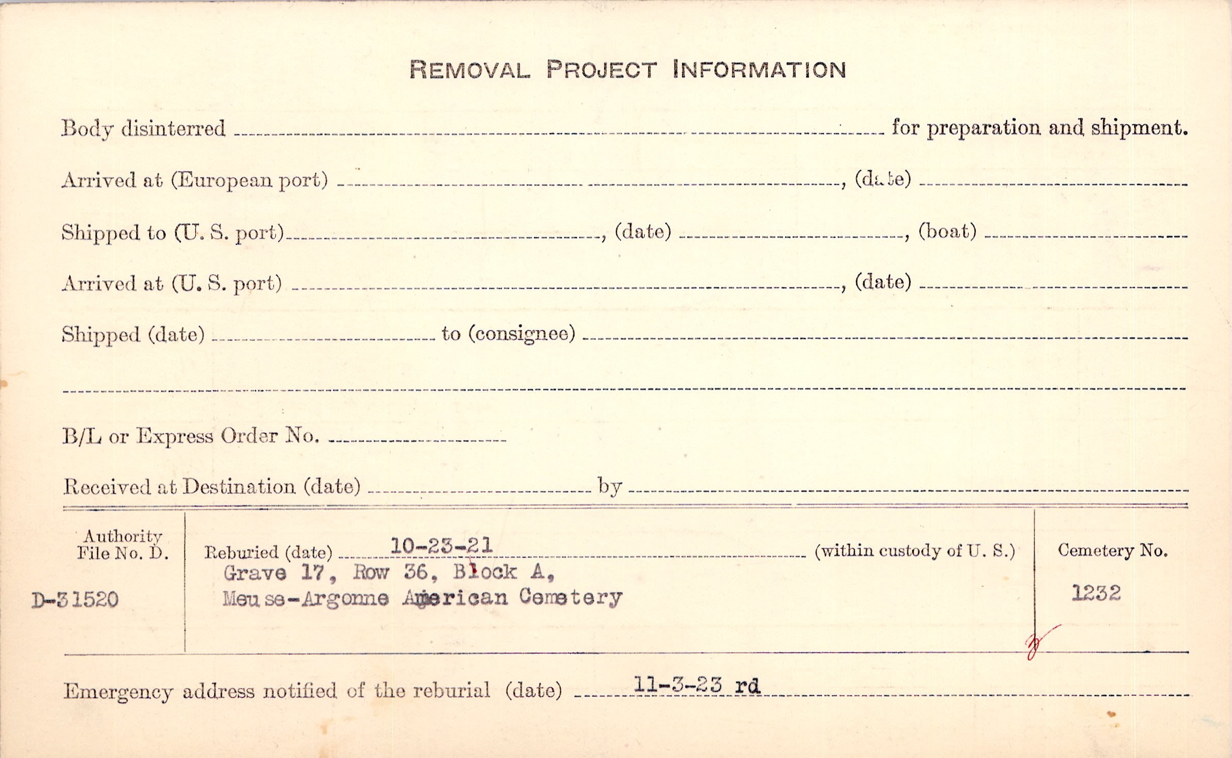 Grave 60, Section 107, Plot 2, Argonne American Cemetery, Romagne-sous-Montfaucon, Meuse