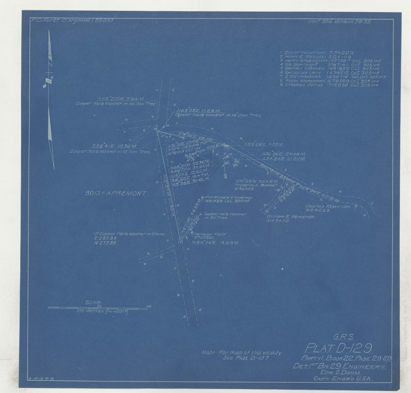 Place of Burial (confirmed): Isolated Grave #1, Cmme. Apremont, Ardennes.,35 SE