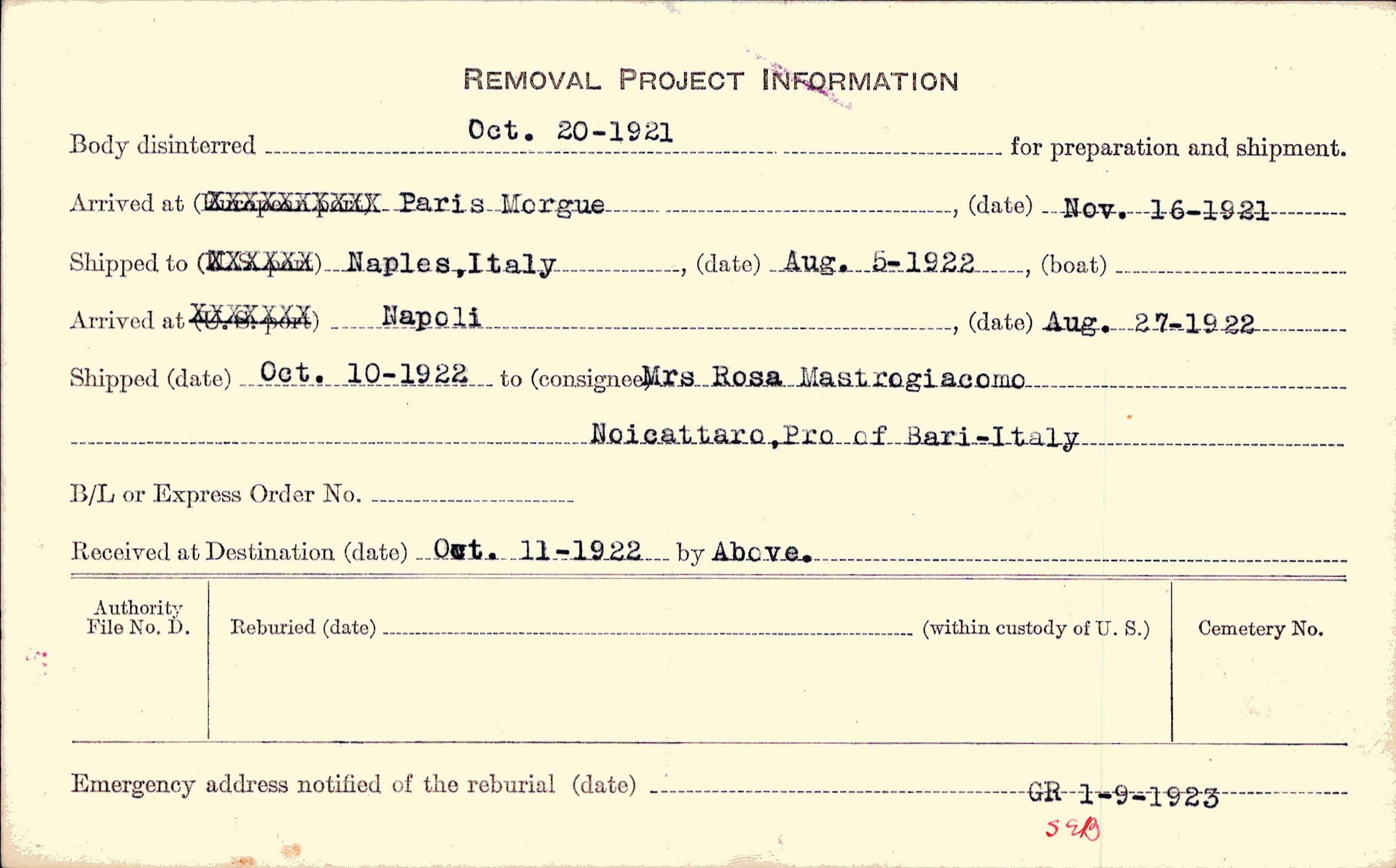 to Mrs Rosa Mastrogiacomo, Noicattaro, Pro of Bari-Italy